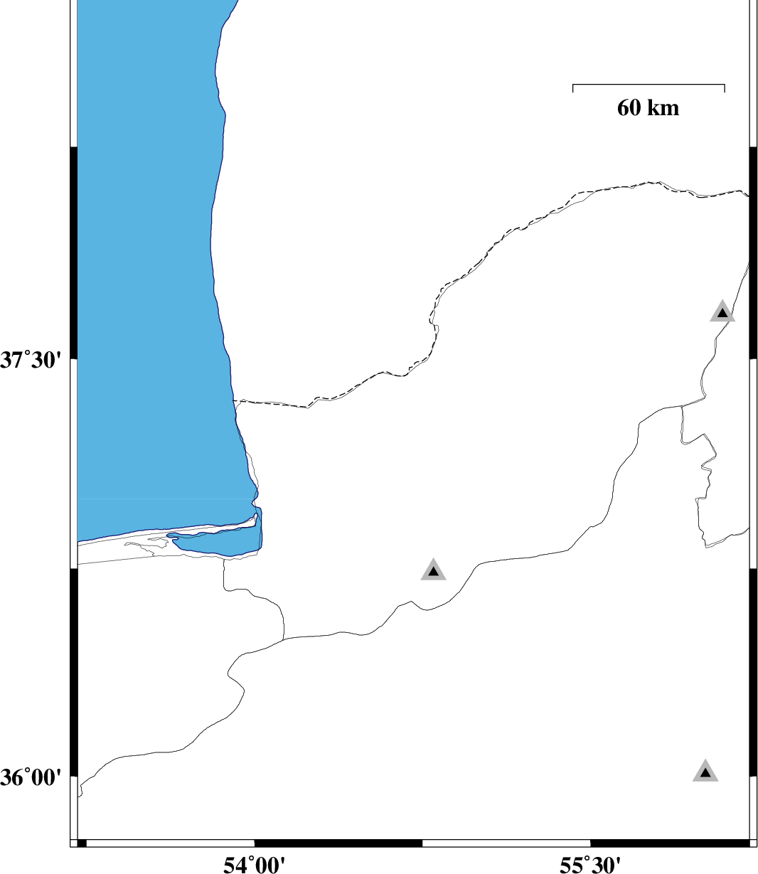 | 2008/03/06 | 20:21:54.5 | 23:51:54.5 | 37.27 | 54.71 | 35 | ML2.8 | 35 km North-East of Aq Qaleh, Golestan Province |
