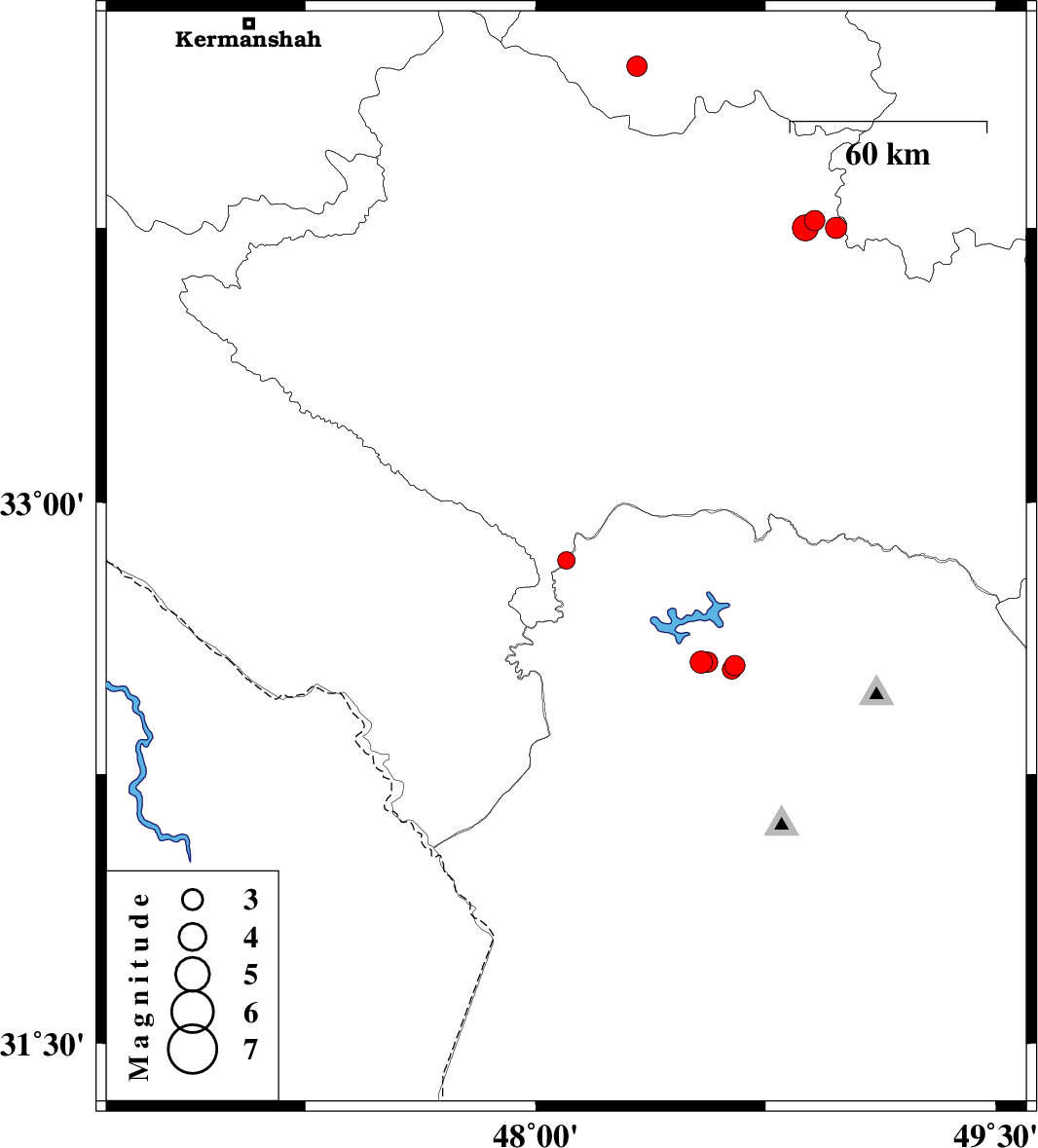 2008/03/04 | 03:31:43.7 | 07:01:43.7 | 32.56 | 48.54 | 17 | ML3.2 | 20 km North-East of Andimeshk, Khoozestan Province | ||