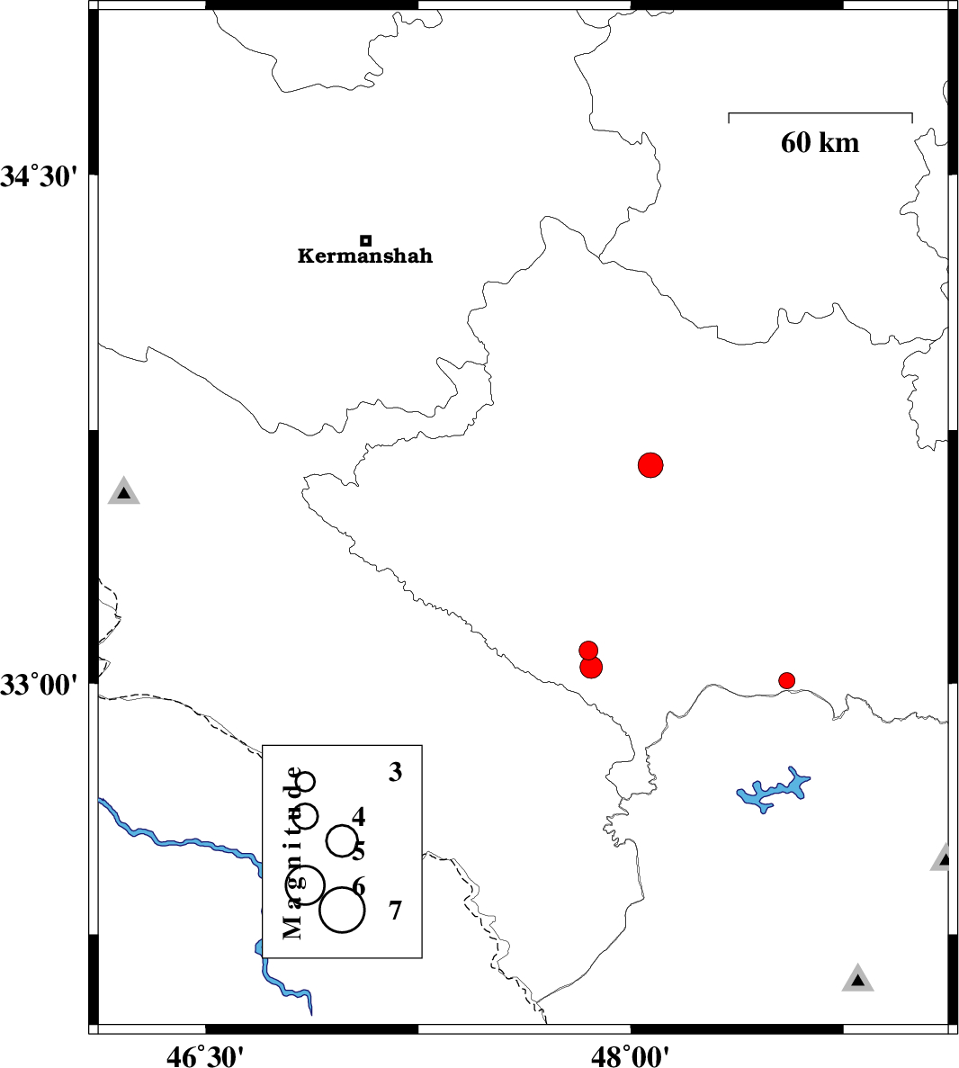 2008/03/17 | 22:05:36.7 | 01:35:36.7 | 32.93 | 47.4 | 18 | ML2.9 | 6 km Abdanan, Ilam Province | ||