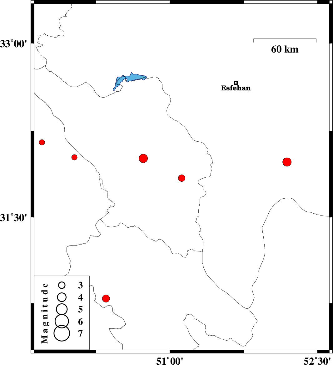 | 2008/03/19 | 08:15:26.1 | 11:45:26.1 | 31.98 | 52.19 | 14 | ML4 | 30 km East of Shahreza, Esfahan Province | ||