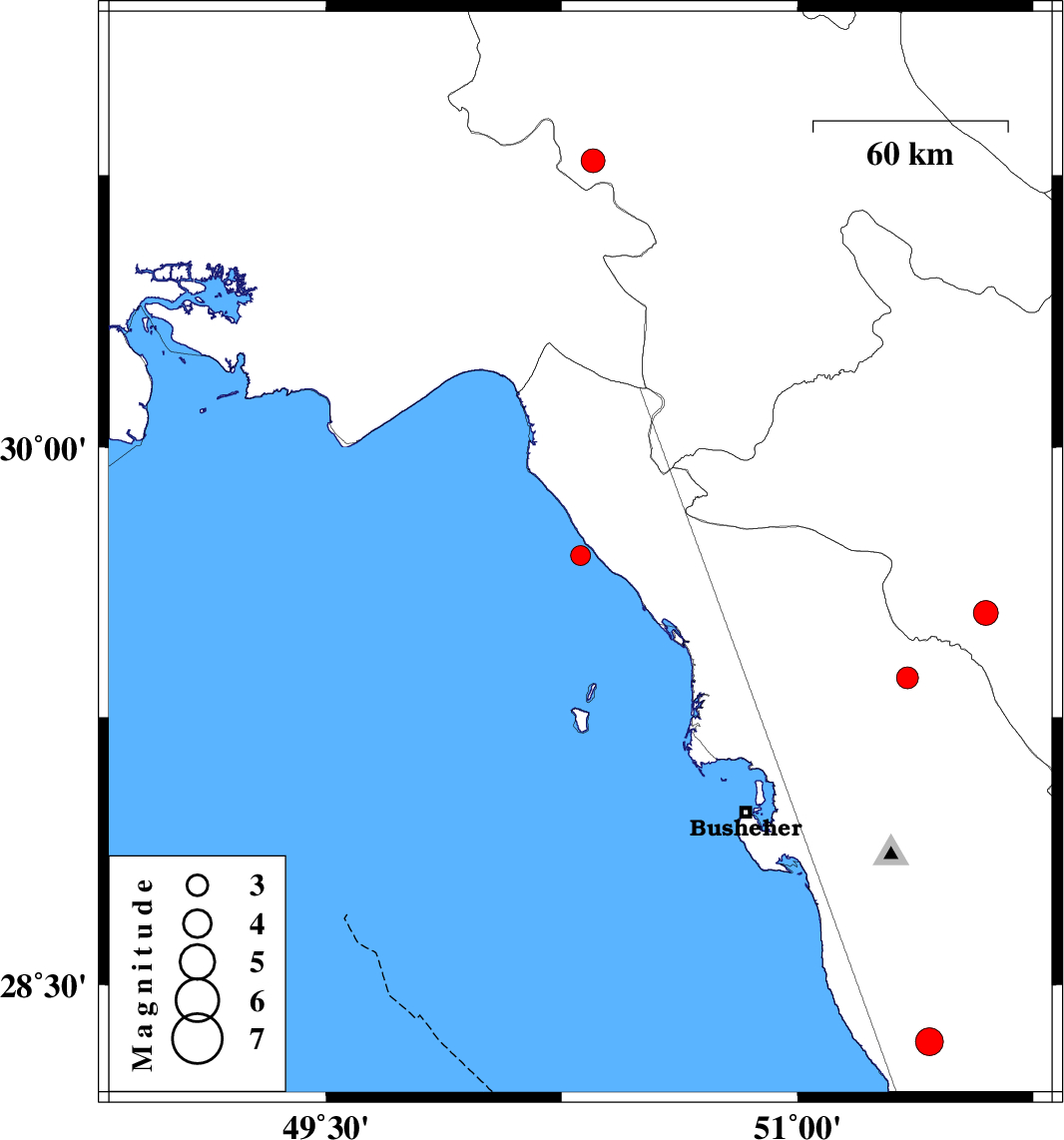 | 2008/02/25 | 20:17:57.5 | 23:47:57.5 | 28.34 | 51.42 | 18 | ML4 | 34 km South of Khormog, Bushehr Province |