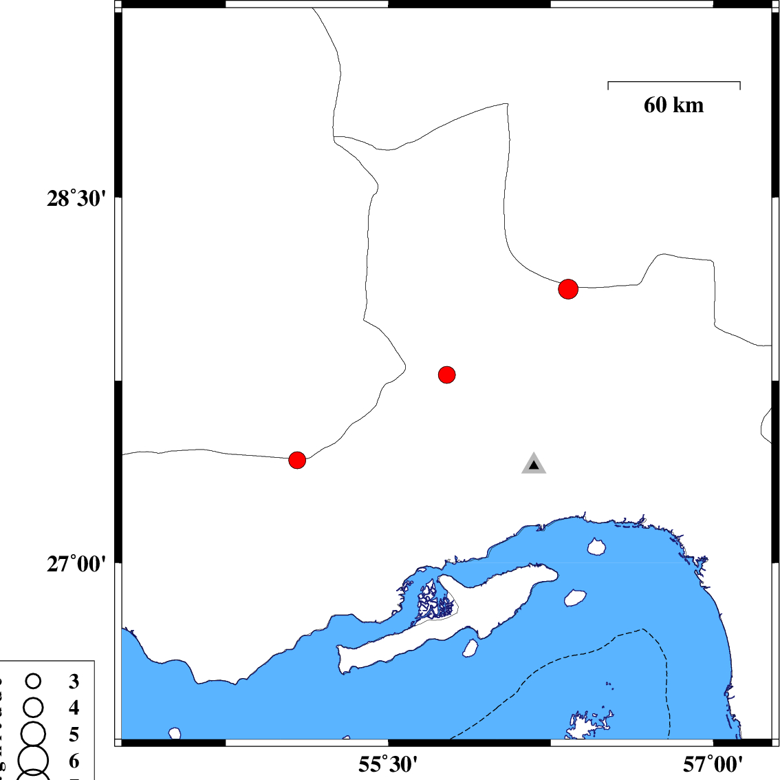 2008/03/26 | 07:09:39.1 | 11:39:39.1 | 27.77 | 55.77 | 14 | ML3.5 | 61 km South-West of Hajiabad, Hormozgan Province | ||