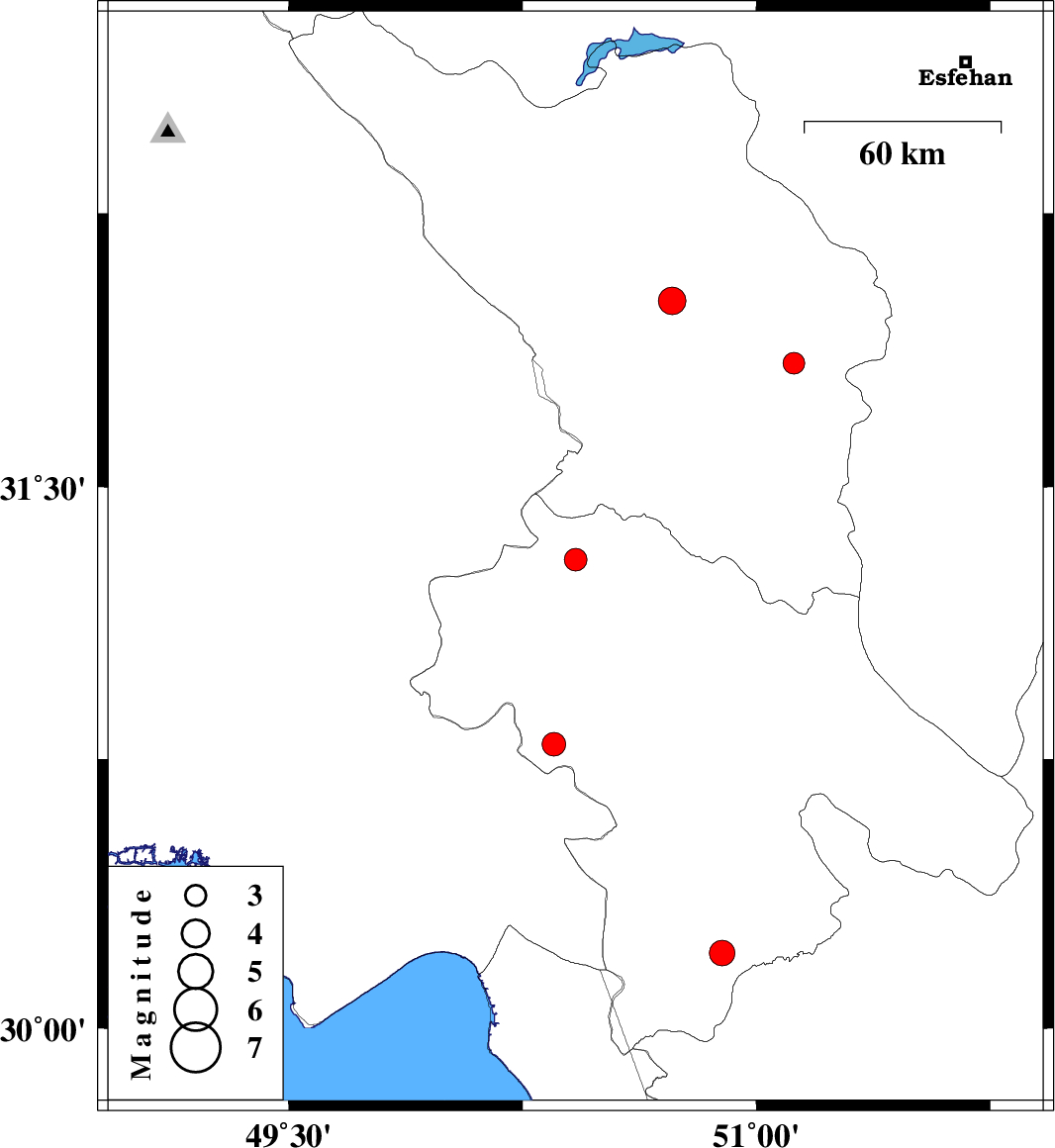 | 2008/03/27 | 01:31:23.4 | 06:01:23.4 | 31.3 | 50.42 | 15 | ML3.2 | 43 km South-West of Lordegan, Chaharmahal Bakhtiari Province | ||