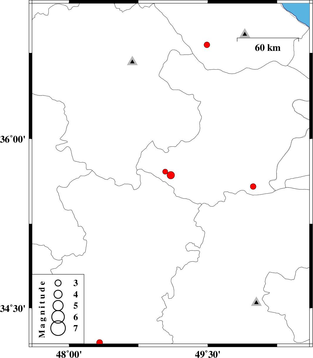 | 2008/03/05 | 15:14:00.4 | 18:44:00.4 | 35.71 | 49.04 | 15 | ML2.5 | 36 km North of Razan, Hamedan Province |