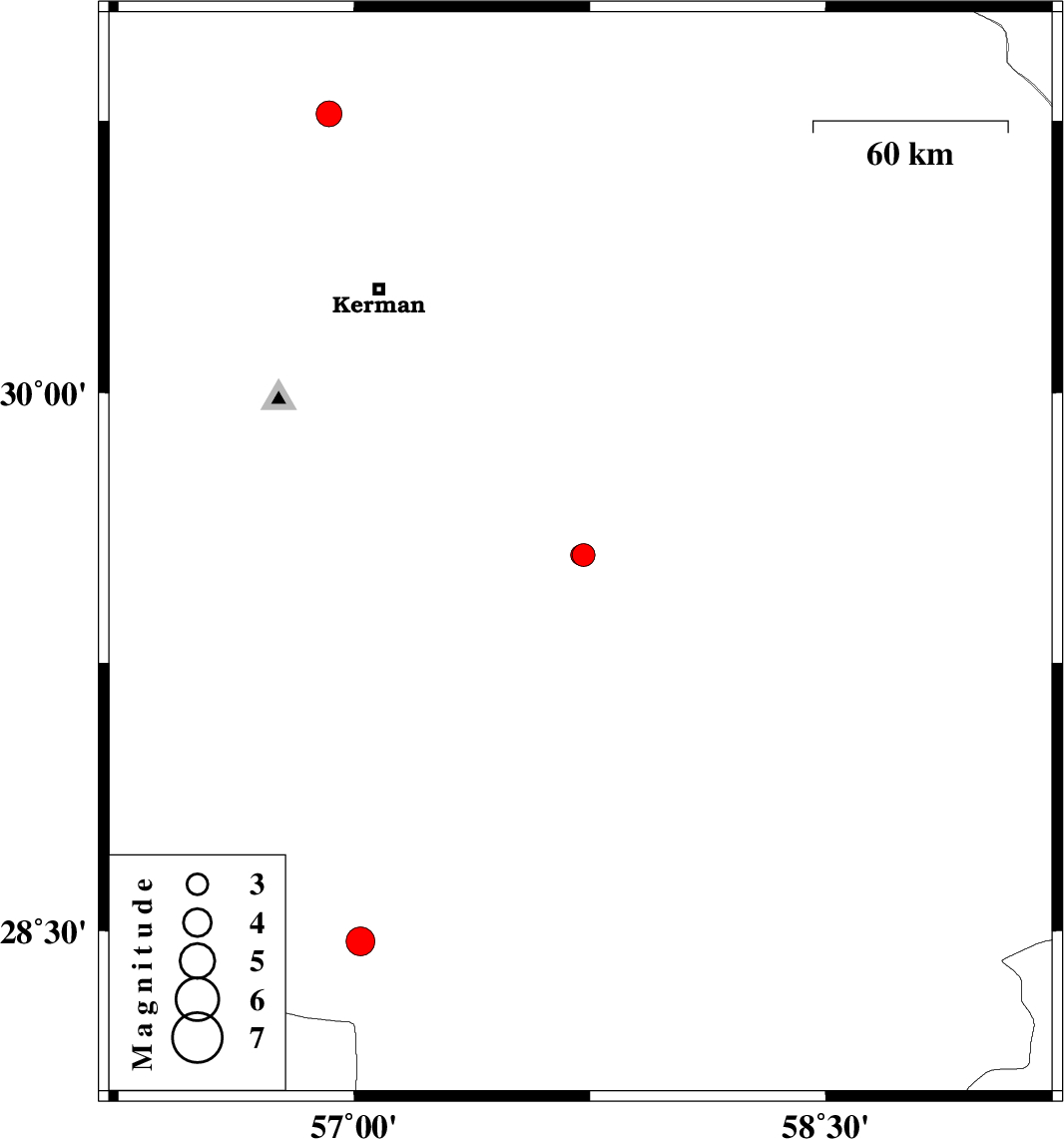 2008/03/27 19:21:55.4 23:51:55.4 29.5557.7314 ML3.2 78 km North-West of Bam, Kerman Province