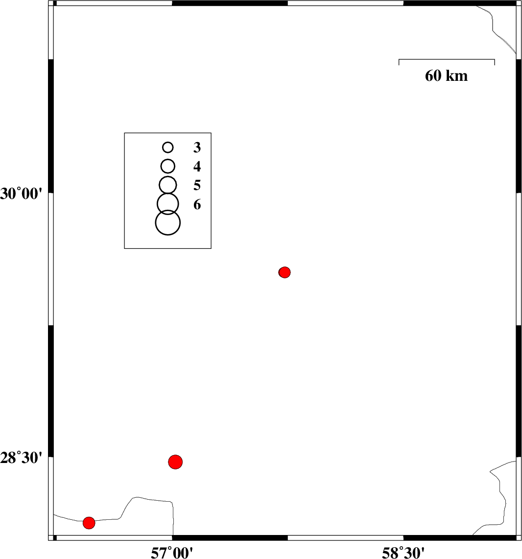 2008/03/27 19:21:55.4 23:51:55.4 29.5557.7314 ML3.2 78 km North-West of Bam, Kerman Province