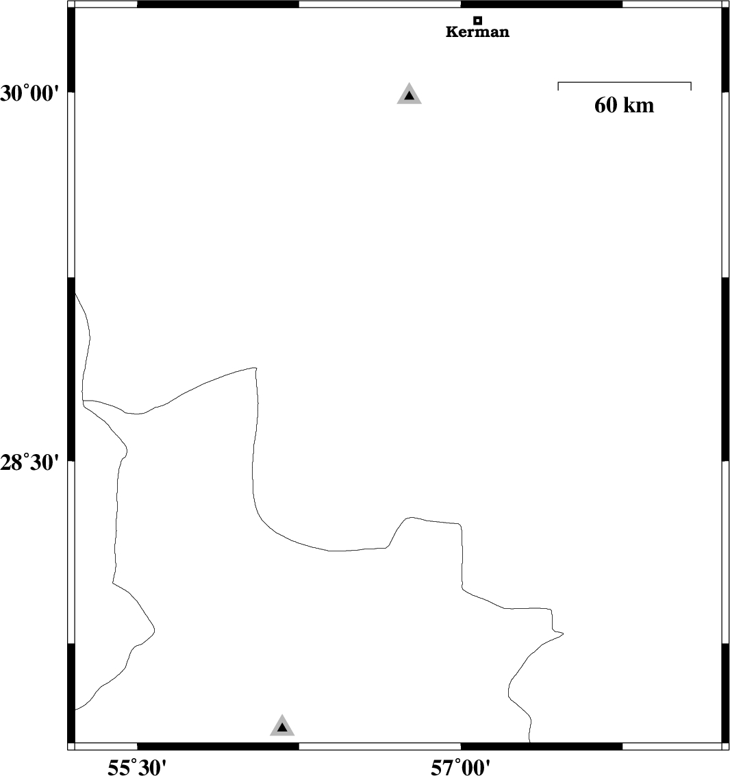 2008/03/27 | 19:21:55.4 | 23:51:55.4 | 29.55 | 57.73 | 14 | ML3.2 | 78 km North-West of Bam, Kerman Province | ||