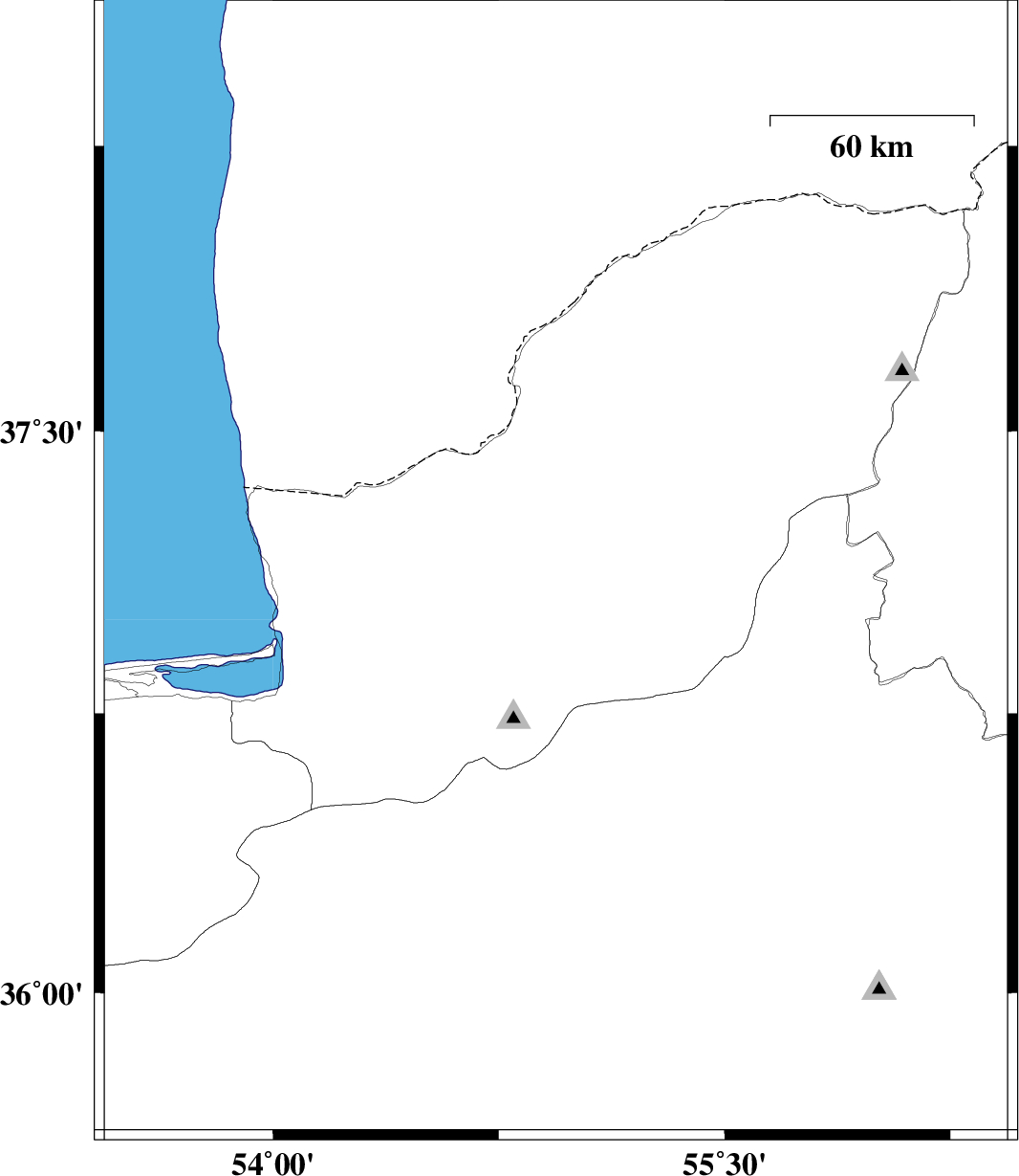 | 2008/04/13 | 18:22:22.5 | 22:52:22.5 | 37.13 | 54.94 | 20 | ML2.7 | 21 km West of Azadshahr, Golestan Province |