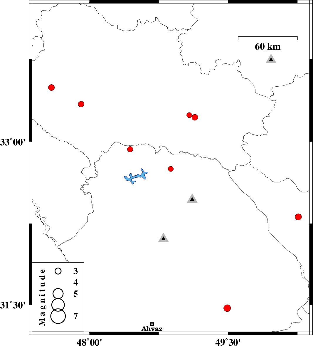 | 2008/03/29 | 21:29:51.2 | 01:59:51.2 | 32.93 | 48.44 | 15 | ML2.7 | 53 km North of Andimeshk, Khoozestan Province | ||