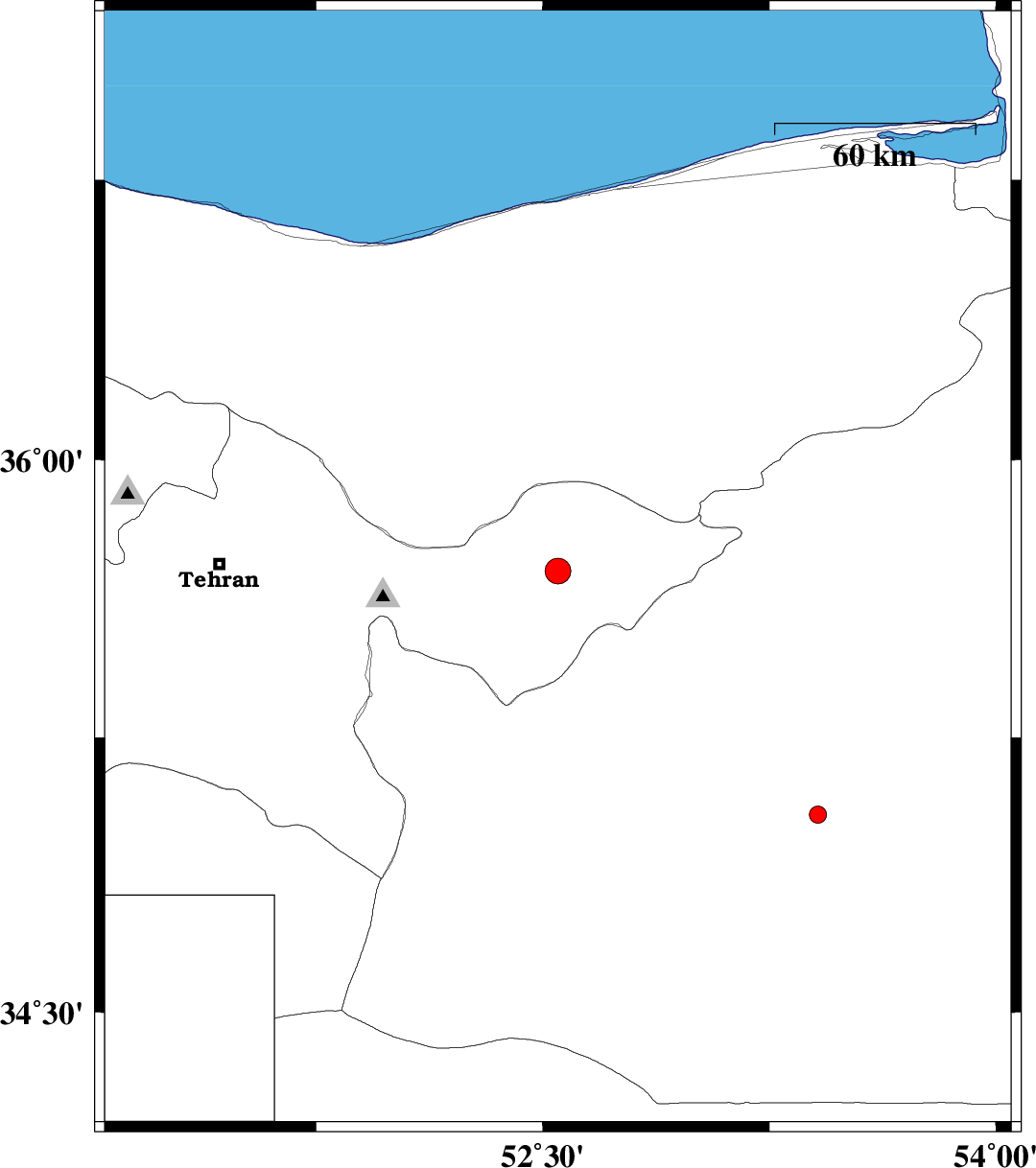 | 2008/04/24 | 22:44:29.0 | 03:14:29.0 | 35.7 | 52.55 | 15 | ML3.8 | 20 km West of Firuzkuh, Tehran Province | ||