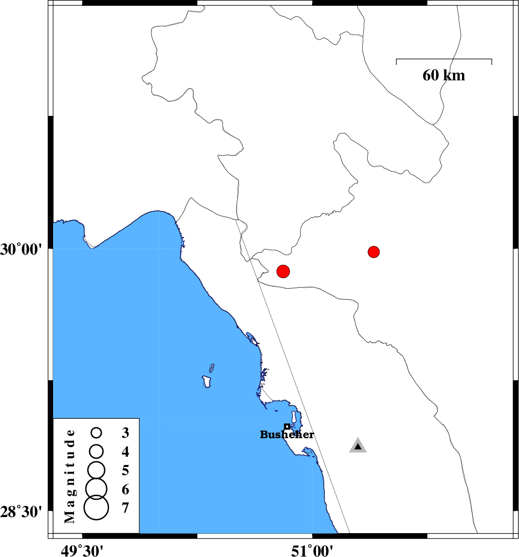 | 2008/04/26 | 22:20:03.3 | 02:50:03.3 | 29.87 | 50.81 | 15 | ML3.8 | 43 km North-East of Bandar-e genaveh, Bushehr Province | ||