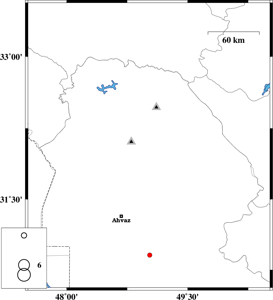 2008/05/04 | 01:24:12.8 | 05:54:12.8 | 32.06 | 49.02 | 25 | ML2.8 | 15 km East of Shushtar, Khoozestan Province | ||