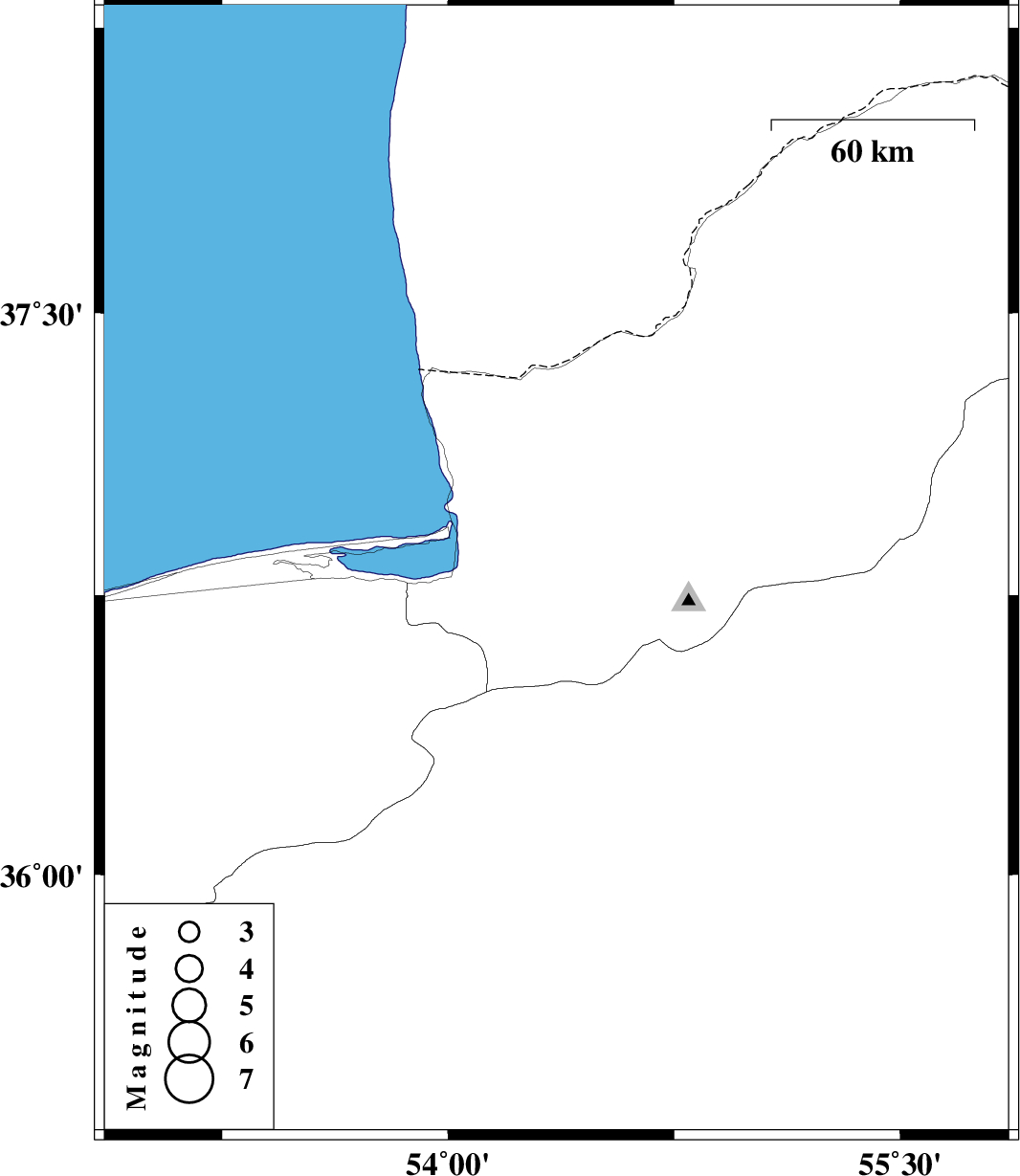 | 2008/05/11 | 06:59:38.5 | 11:29:38.5 | 36.81 | 54.36 | 14 | ML3 | 7 km Gorgan, Golestan Province |