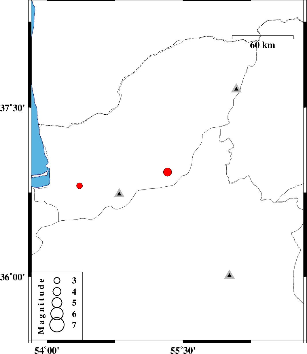 | 2008/05/11 | 06:59:38.5 | 11:29:38.5 | 36.81 | 54.36 | 14 | ML3 | 7 km Gorgan, Golestan Province |