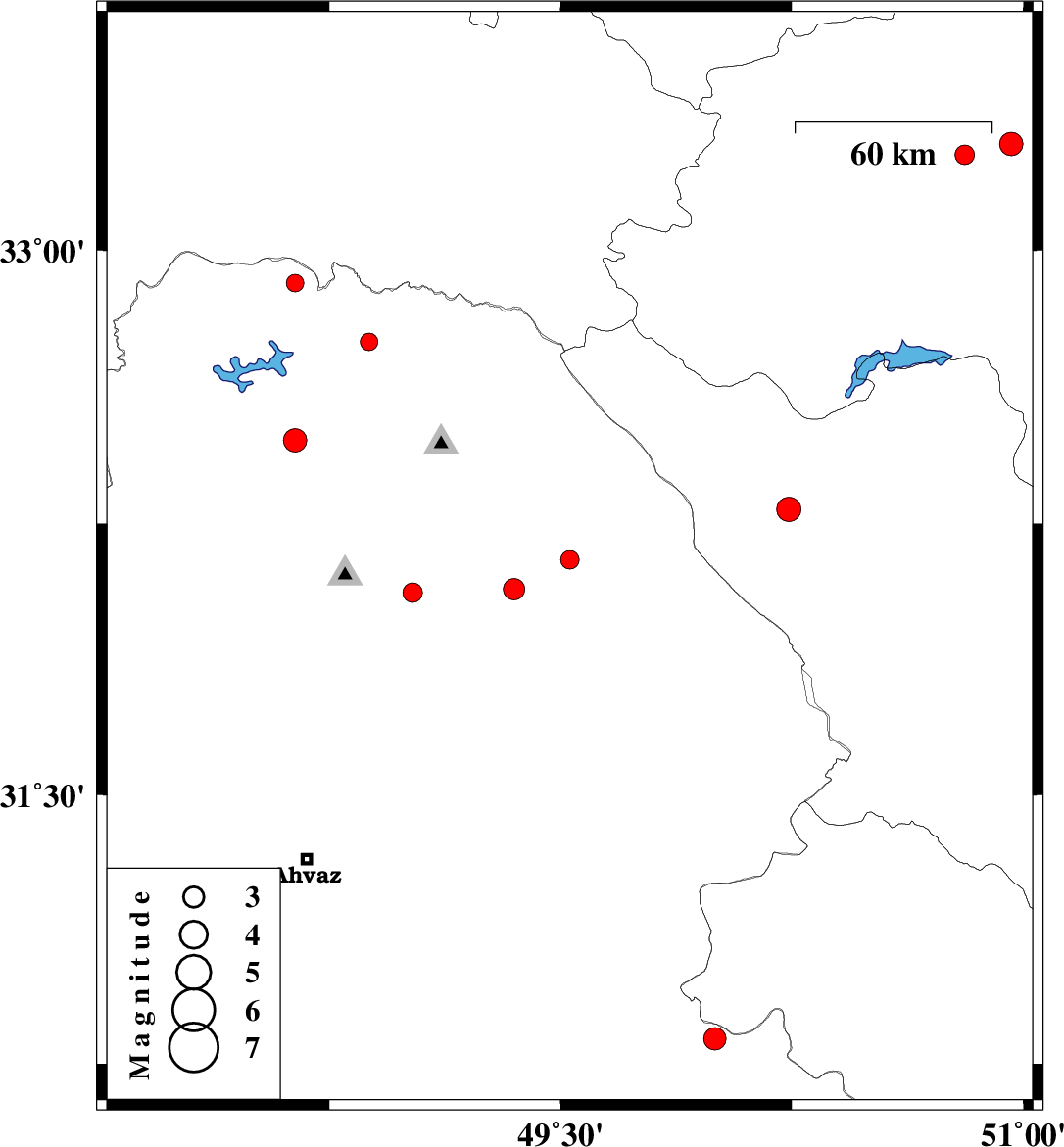 2008/05/04 | 01:24:12.8 | 05:54:12.8 | 32.06 | 49.02 | 25 | ML2.8 | 15 km East of Shushtar, Khoozestan Province | ||