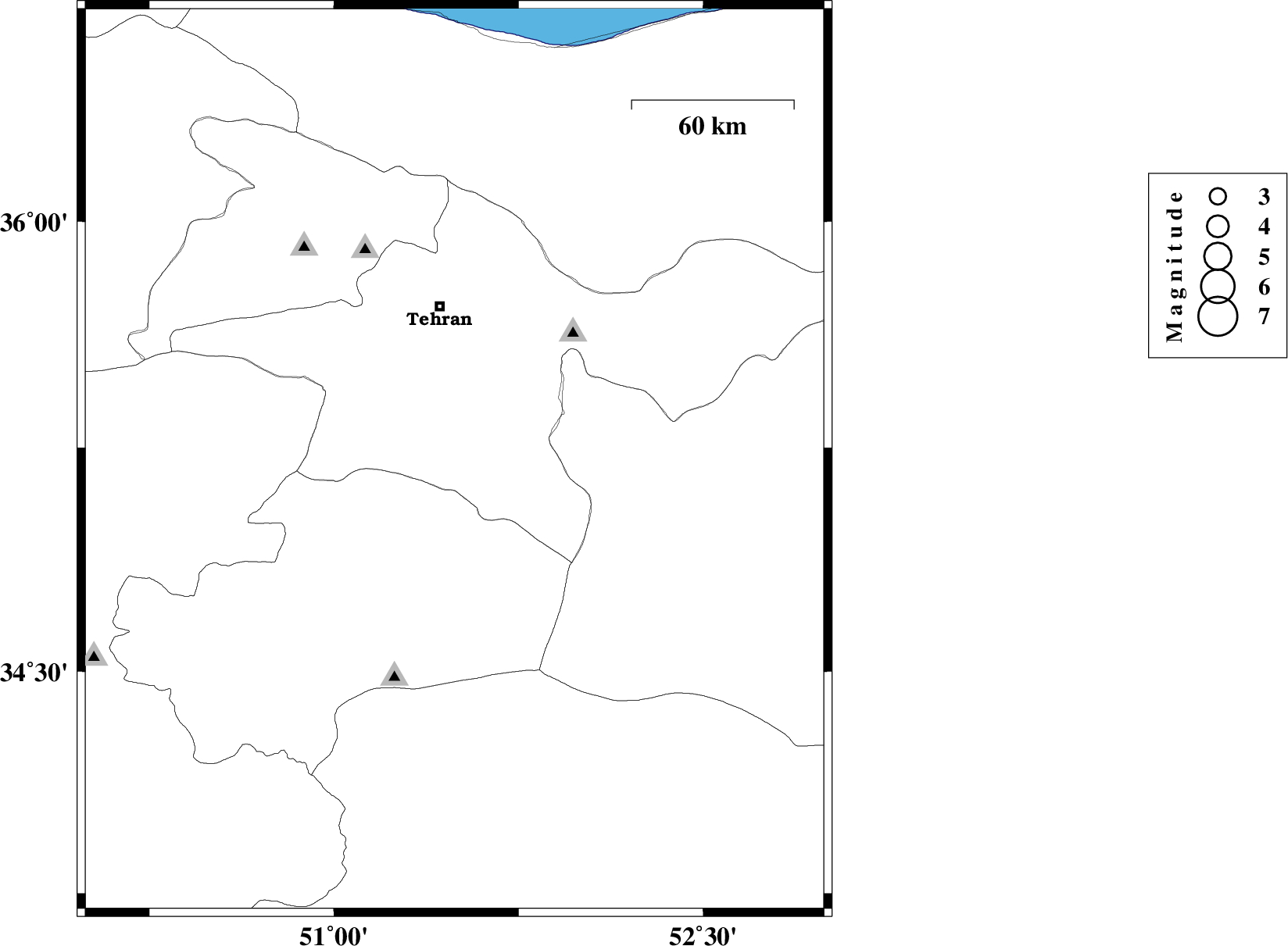 2008/04/30 | 01:29:08.6 | 05:59:08.6 | 36.64 | 50.81 | 14 | ML2.8 | 20 km South of Tonekabon, Mazandaran Province |