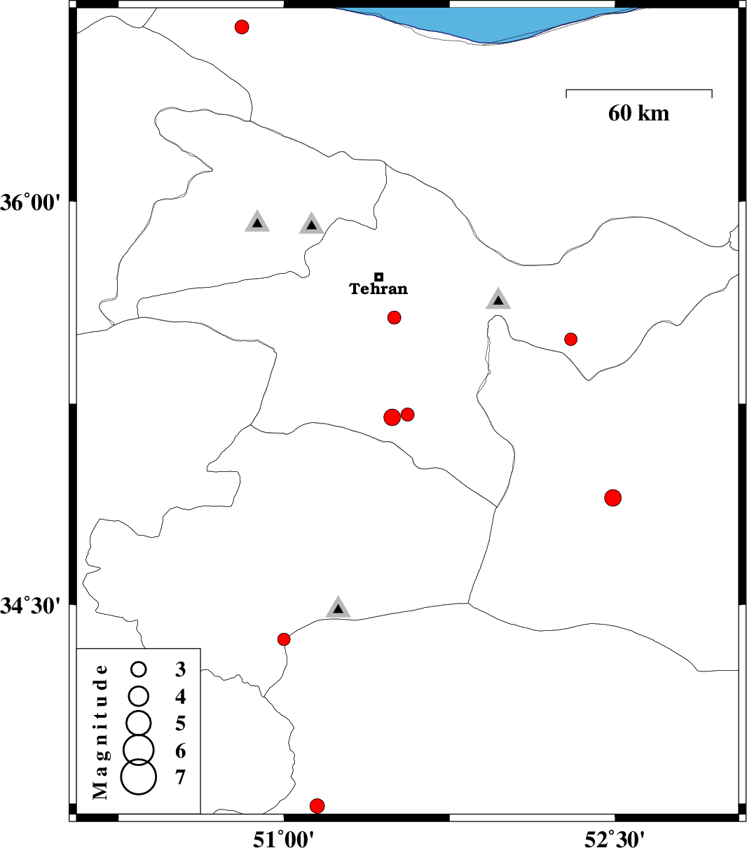 | 2008/05/11 | 08:39:36.4 | 13:09:36.4 | 35.57 | 51.5 | 15 | ML2.7 | 6 km Rey, Tehran Province | ||