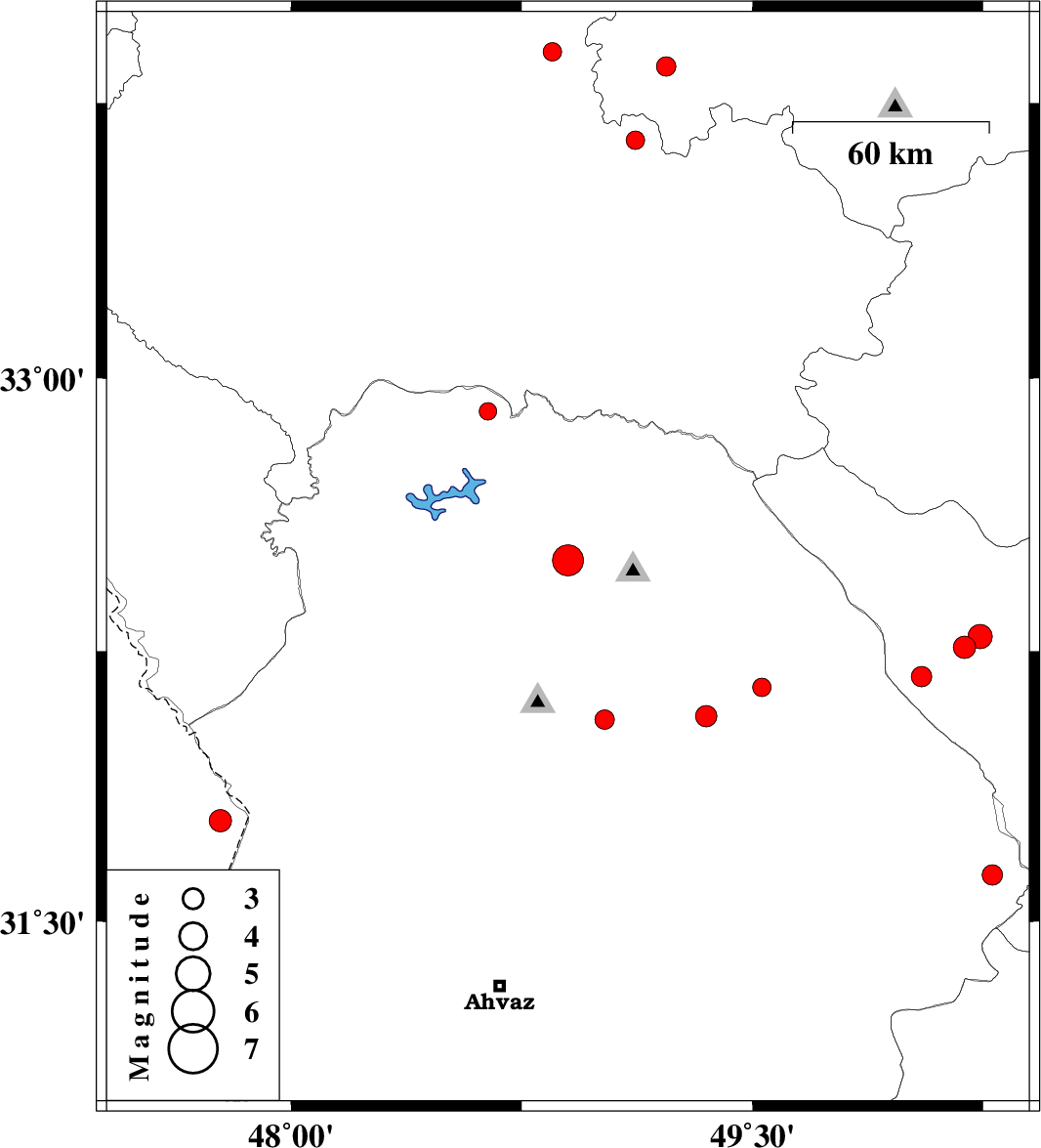 | 2008/05/04 | 01:24:12.8 | 05:54:12.8 | 32.06 | 49.02 | 25 | ML2.8 | 15 km East of Shushtar, Khoozestan Province |
