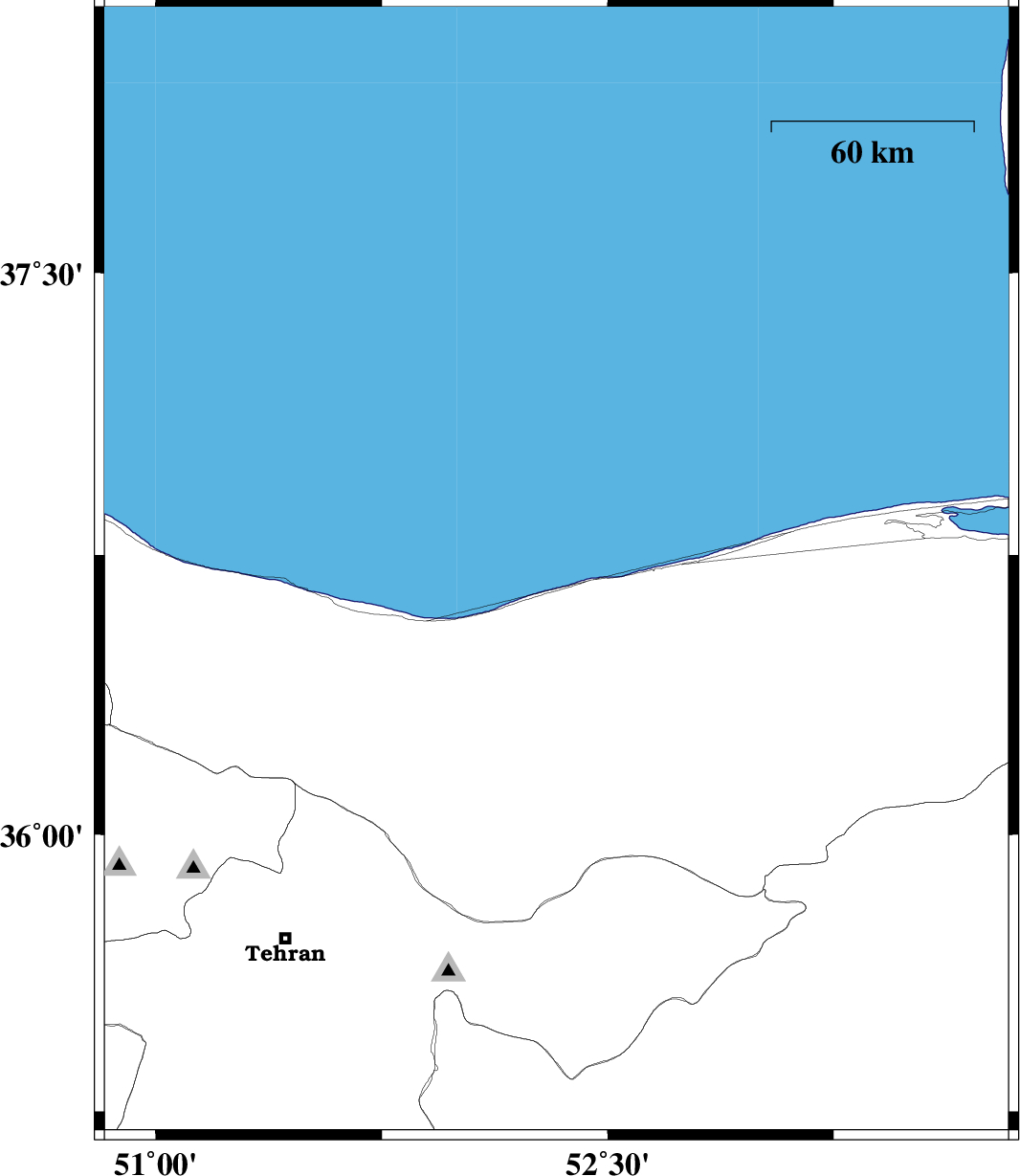 2008/06/09 | 13:38:22.7 | 18:08:22.7 | 36.7 | 52.33 | 28 | ML2.9 | Caspian Sea, 8 km Mahmud Abad |