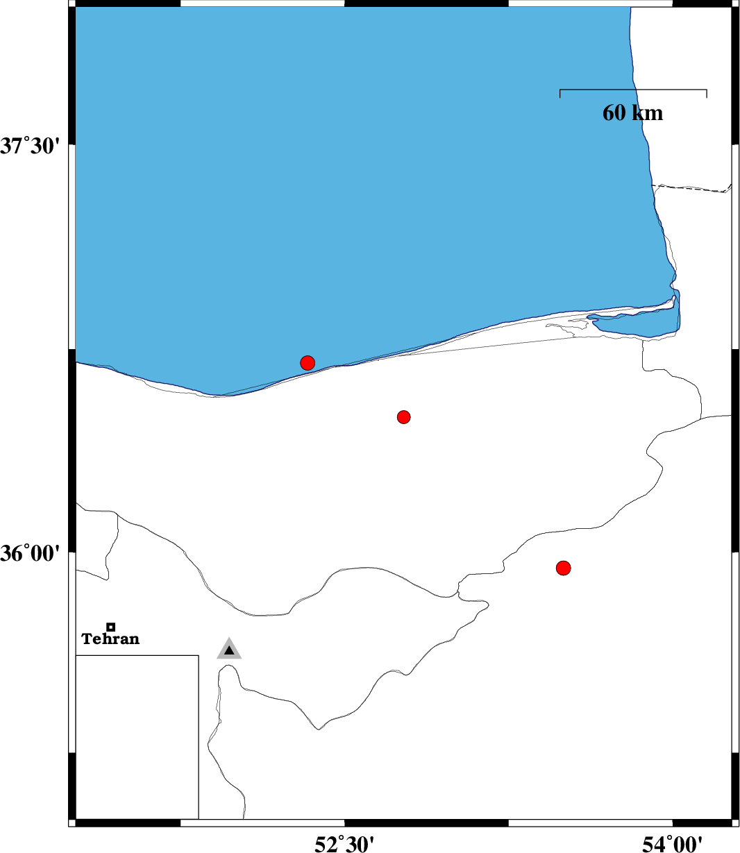 | 2008/06/09 | 13:38:22.7 | 18:08:22.7 | 36.7 | 52.33 | 28 | ML2.9 | Caspian Sea, 8 km Mahmud Abad | ||