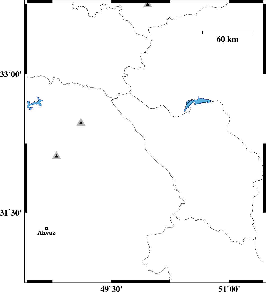 | 2008/06/03 | 09:21:52.7 | 13:51:52.7 | 32.5 | 48.9 | 14 | ML4.5 | 23 km North-West of Lali, Khoozestan Province | ||