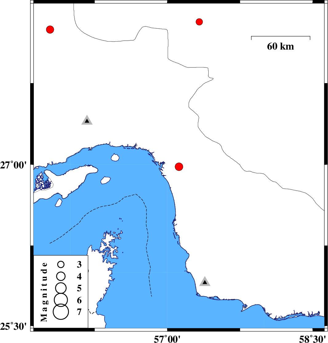 2008/06/17 | 16:53:29.4 | 21:23:29.4 | 26.98 | 57.12 | 17 | ML3.7 | 19 km South of Minab, Hormozgan Province | ||