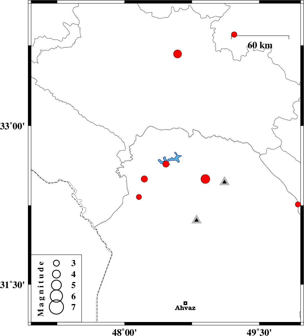 | 2008/06/03 | 09:21:52.7 | 13:51:52.7 | 32.5 | 48.9 | 14 | ML4.5 | 23 km North-West of Lali, Khoozestan Province | ||
