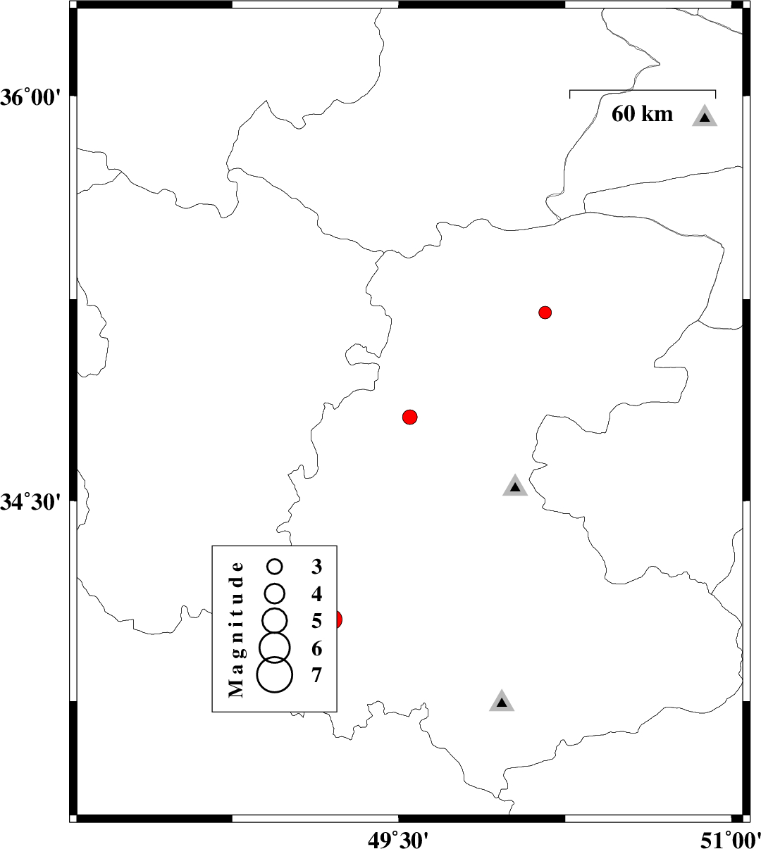 | 2008/07/01 | 18:33:45.7 | 23:03:45.7 | 34.43 | 48.94 | 14 | ML2.9 | 18 km North-East of Malayer, Hamedan Province | ||
