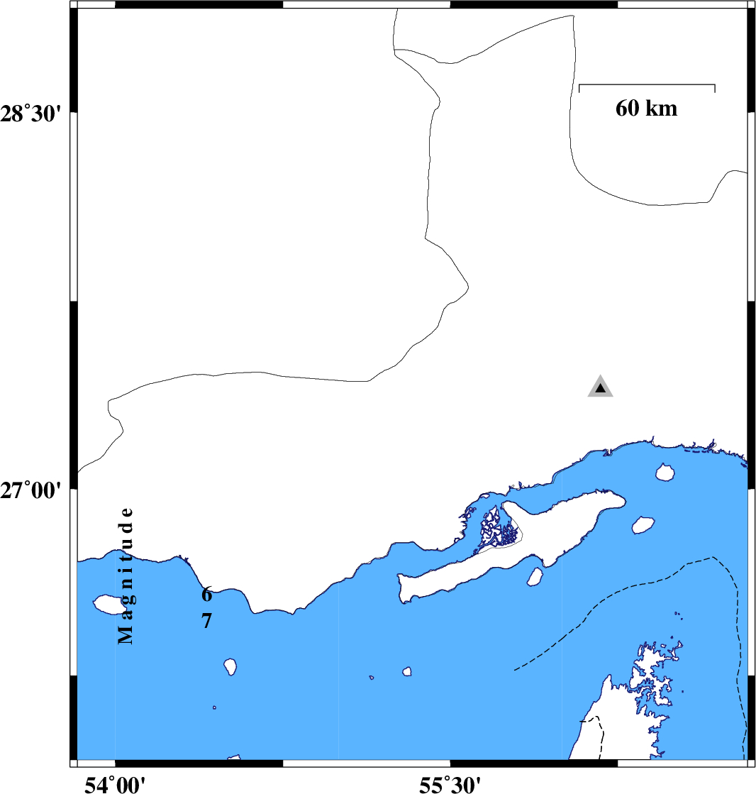 2008/06/30 | 03:41:00.8 | 08:11:00.8 | 26.68 | 55.09 | 35 | ML3 | 28 km North-East of Bandar-e lengeh, Hormozgan Province | ||