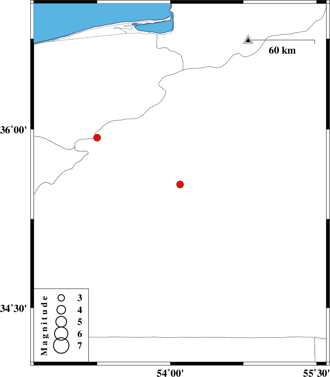 2008/07/15 | 03:54:42.4 | 08:24:42.4 | 35.54 | 54.1 | 34 | ML3.2 | 63 km East of Semnan, Semnan Province | ||