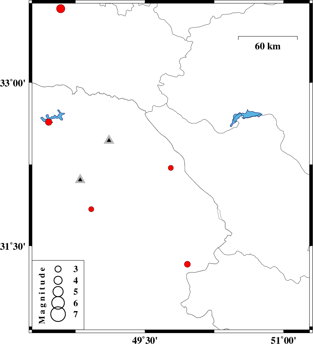 | 2008/06/25 | 09:56:20.6 | 14:26:20.6 | 33.67 | 48.59 | 14 | ML4.1 | 29 km South-West of Borujerd, Lorestan Province |