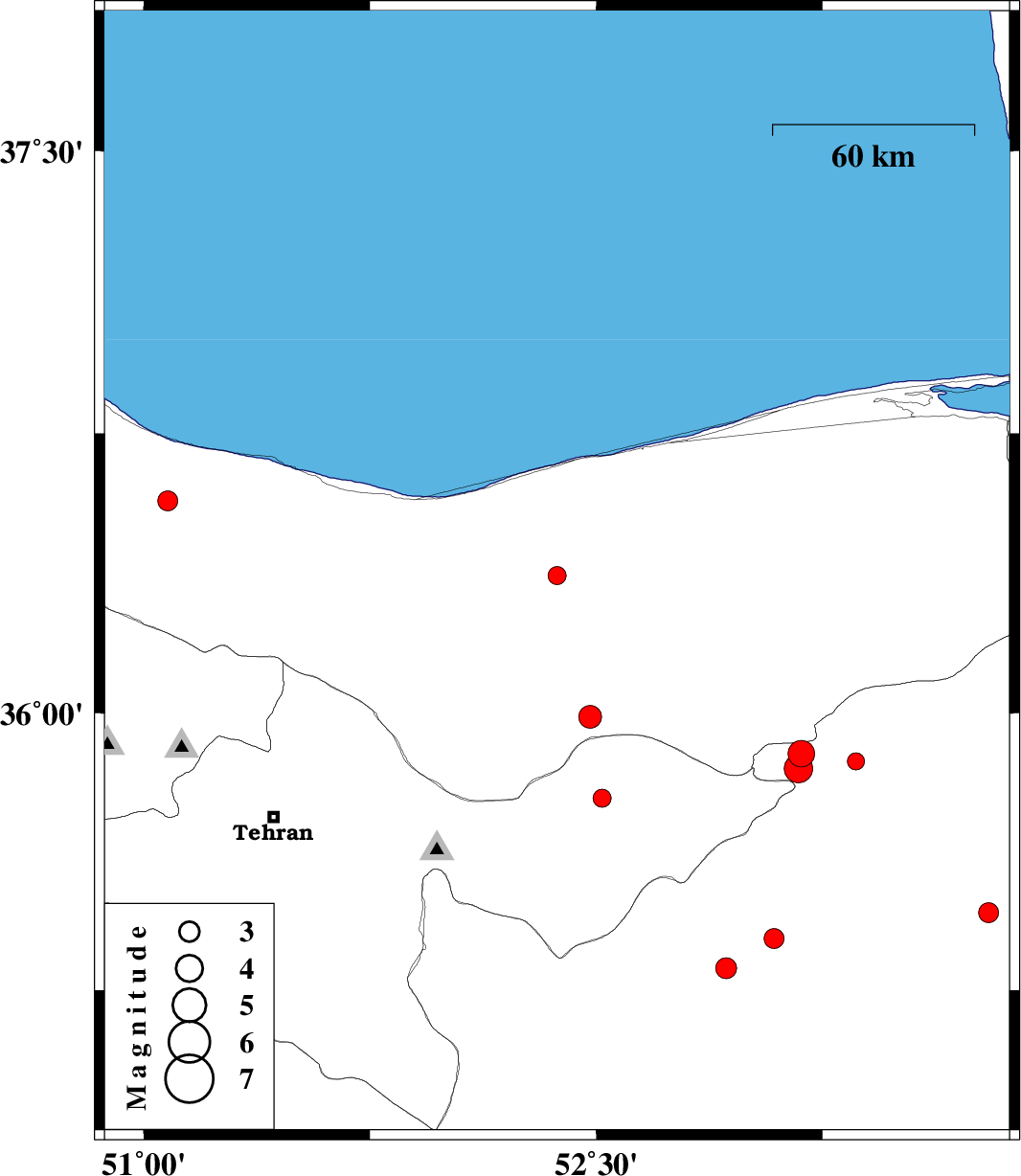 2008/07/16 | 15:56:51.3 | 20:26:51.3 | 35.85 | 53.17 | 14 | ML4.3 | 31 km South-East of Pol-E-Sefid, Mazandaran Province | ||