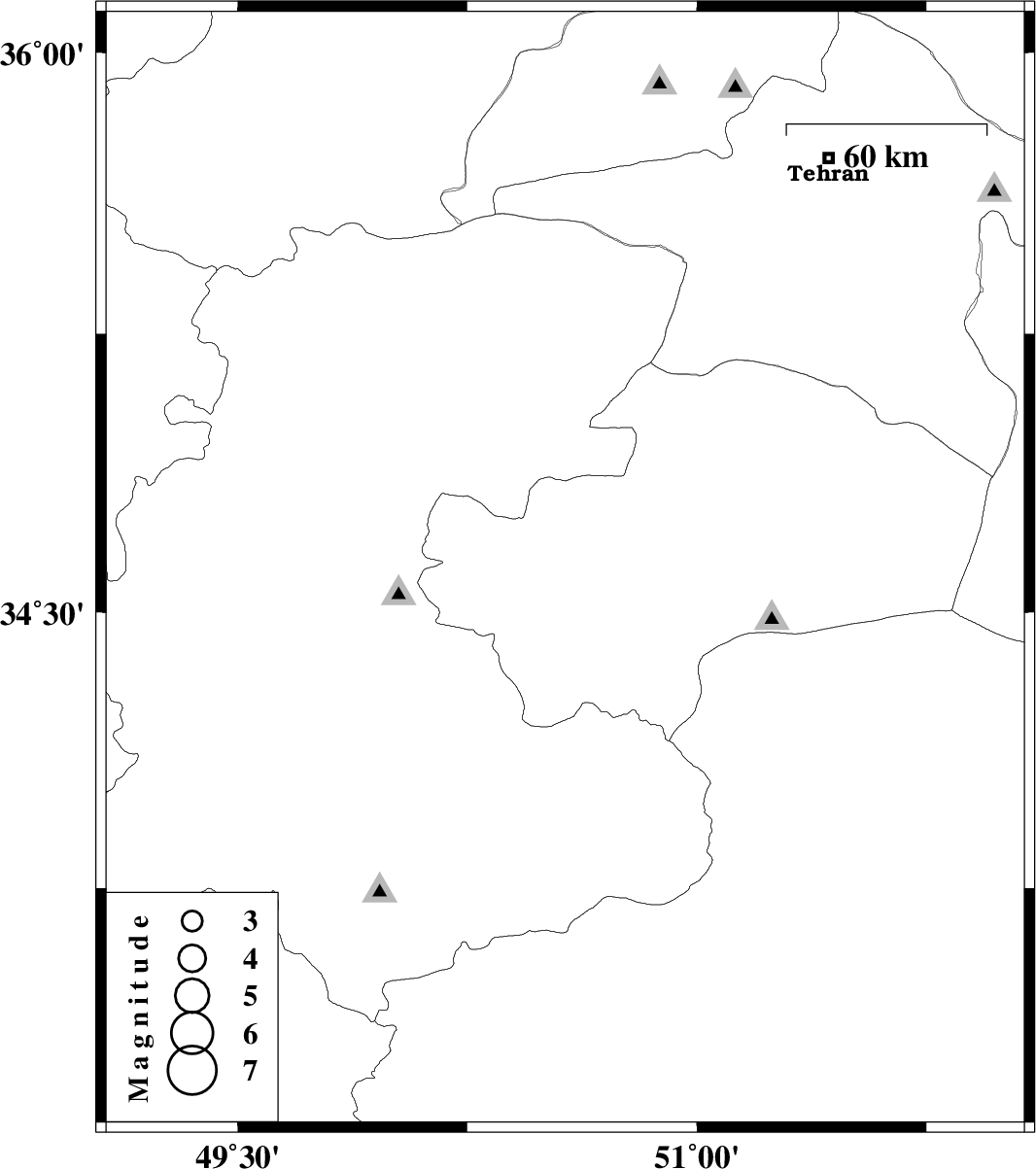 | 2008/08/06 | 15:47:53.2 | 20:17:53.2 | 34.61 | 50.57 | 14 | ML2.6 | 27 km West of Qom, Qom Province |