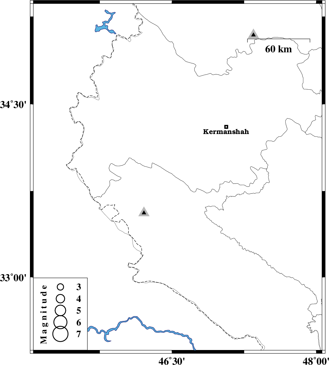 2008/08/08 | 17:34:54.5 | 22:04:54.5 | 33.86 | 46.56 | 14 | ML3.2 | 8 km Sar Ableh, Ilam Province |