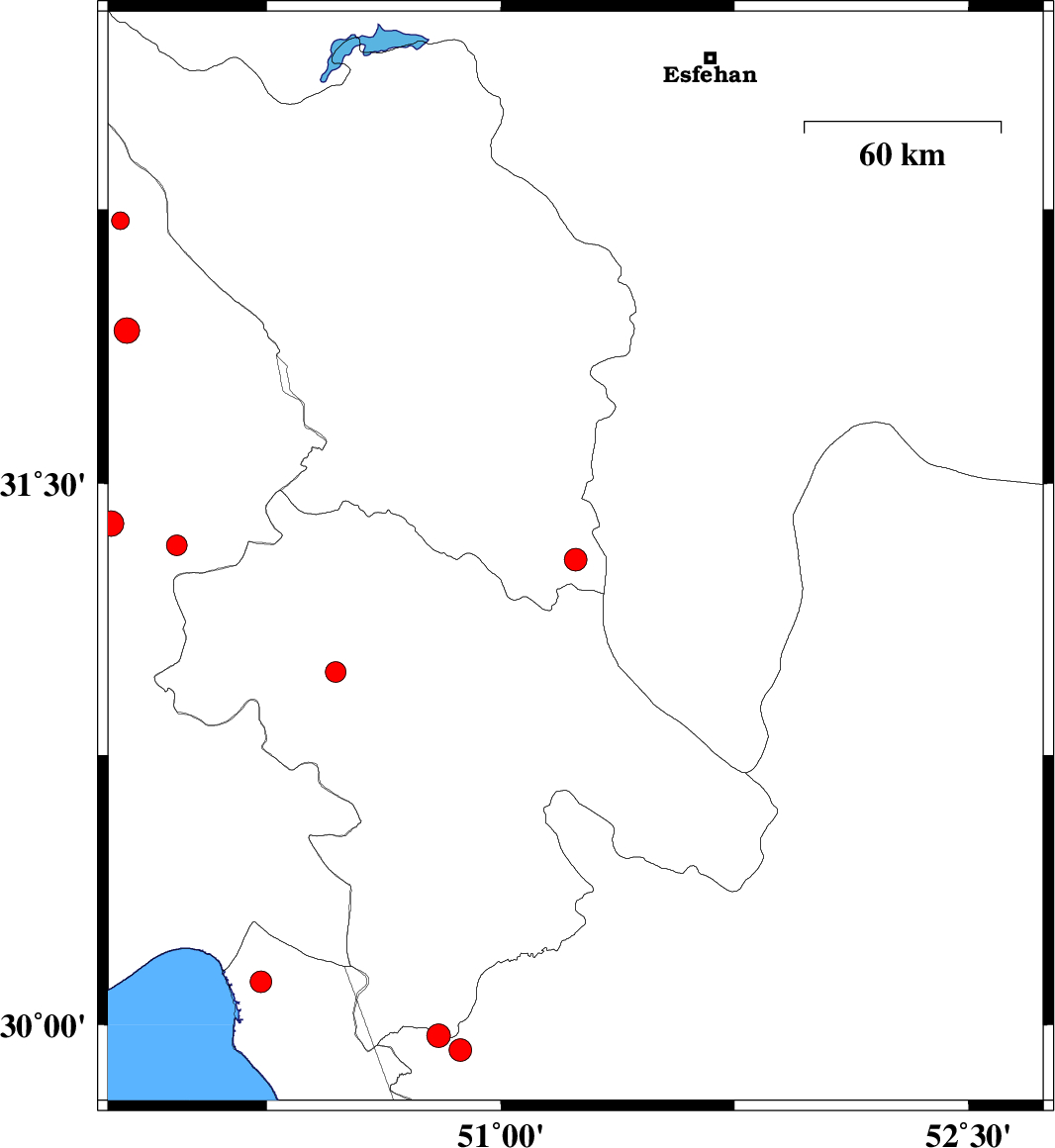 | 2008/08/13 | 00:15:29.4 | 04:45:29.4 | 31.29 | 51.24 | 14 | ML3.3 | 34 km South-West of Semirom, Esfahan Province | ||