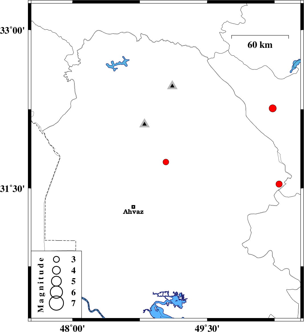 | 2008/08/15 | 02:11:58.6 | 06:41:58.6 | 31.54 | 50.3 | 14 | ML3.2 | 37 km East of Bagh Malek, Khoozestan Province |