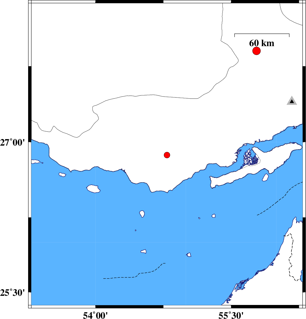 2008/08/18 | 07:21:31.8 | 11:51:31.8 | 26.87 | 54.79 | 14 | ML3 | 38 km North of Bandar-e lengeh, Hormozgan Province | ||