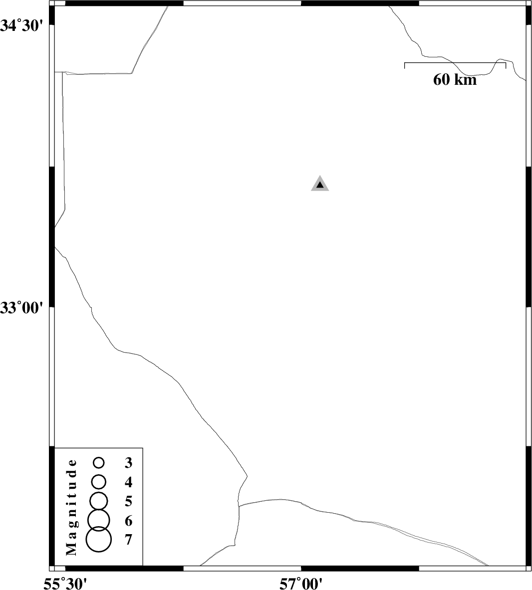 2008/08/24 | 14:52:47.5 | 19:22:47.5 | 33.1 | 56.93 | 14 | ML3.7 | 56 km South of Tabas, Yazd Province |