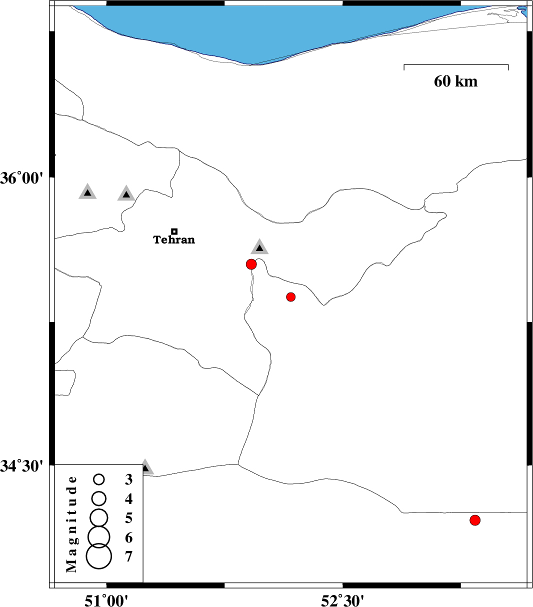 2008/08/26 | 03:39:52.6 | 08:09:52.6 | 35.38 | 52.17 | 15 | ML2.5 | 23 km North-West of Garmsar, Semnan Province | ||