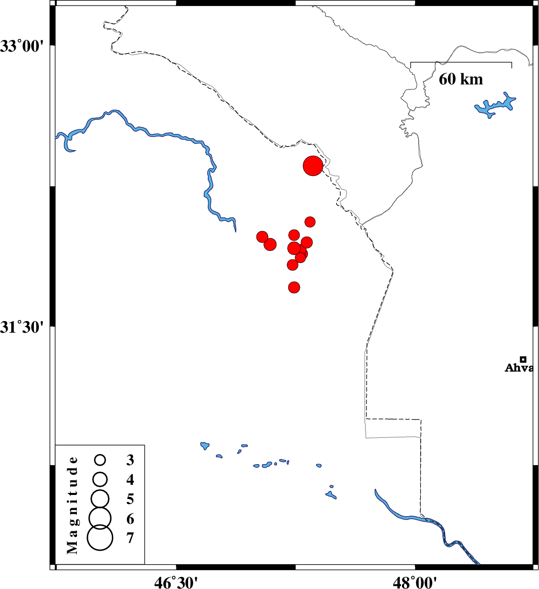 2008/08/28 02:43:57.5 07:13:57.5 31.8747.2837 ML3 91 km South of Dehloran, Ilam Province