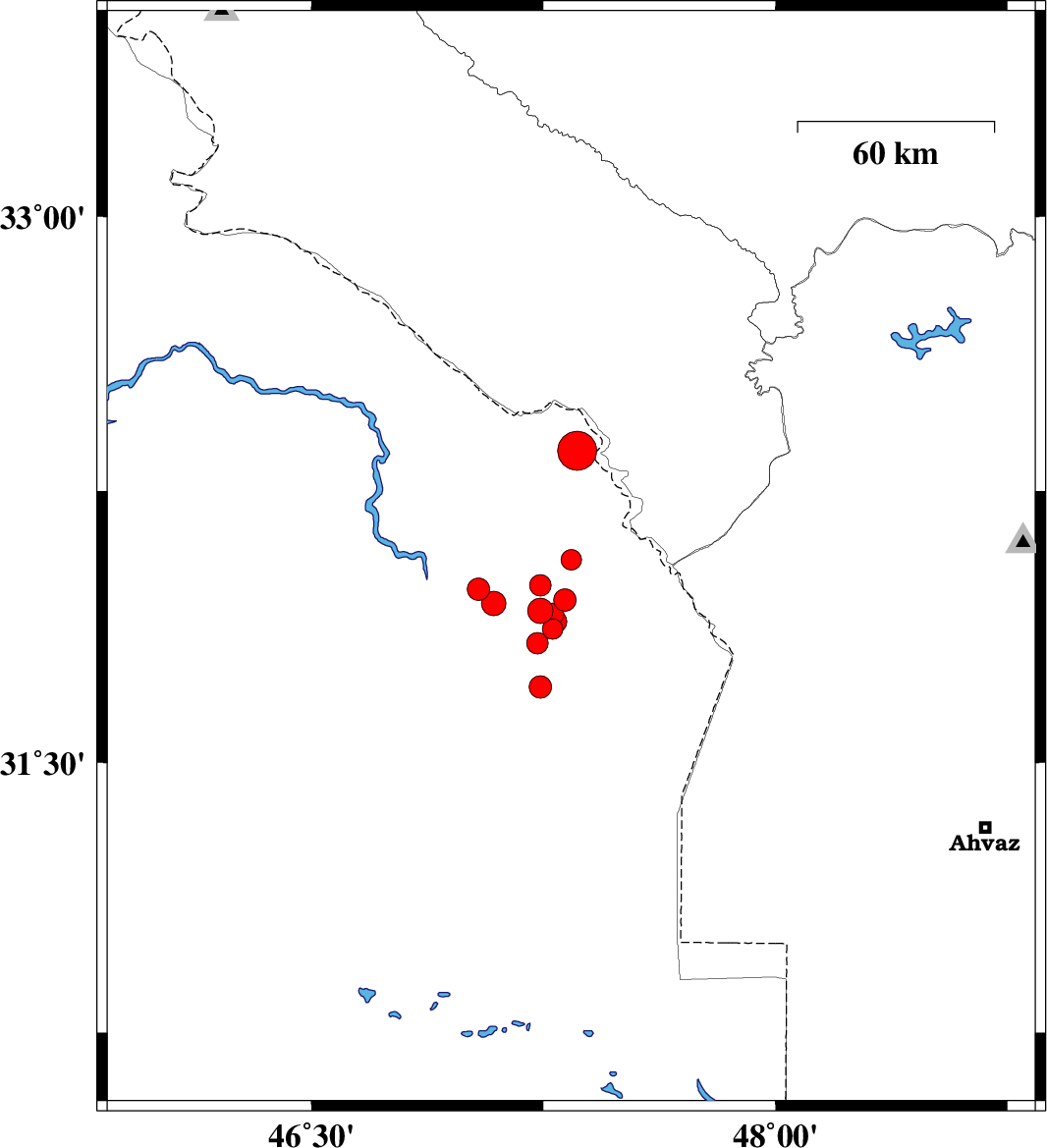 2008/08/28 05:11:24.0 09:41:24.0 31.7147.2430 ML3.2 90 km North-West of Susangerd, Khoozestan Province