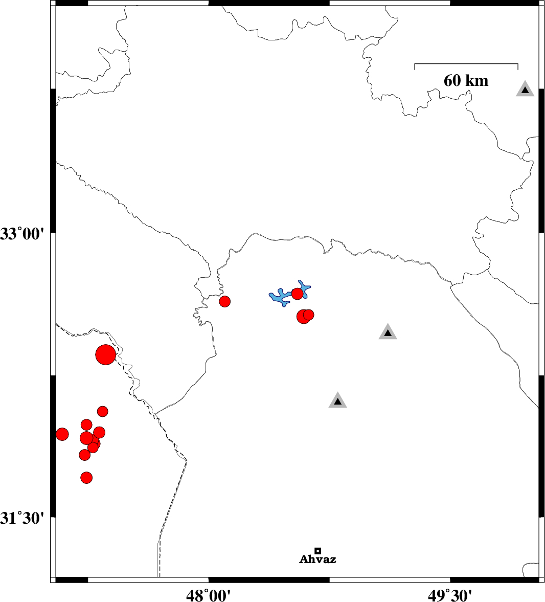 | 2008/08/29 | 12:16:07.5 | 16:46:07.5 | 32.64 | 48.1 | 18 | ML3.1 | 31 km North-West of Andimeshk, Khoozestan Province | ||