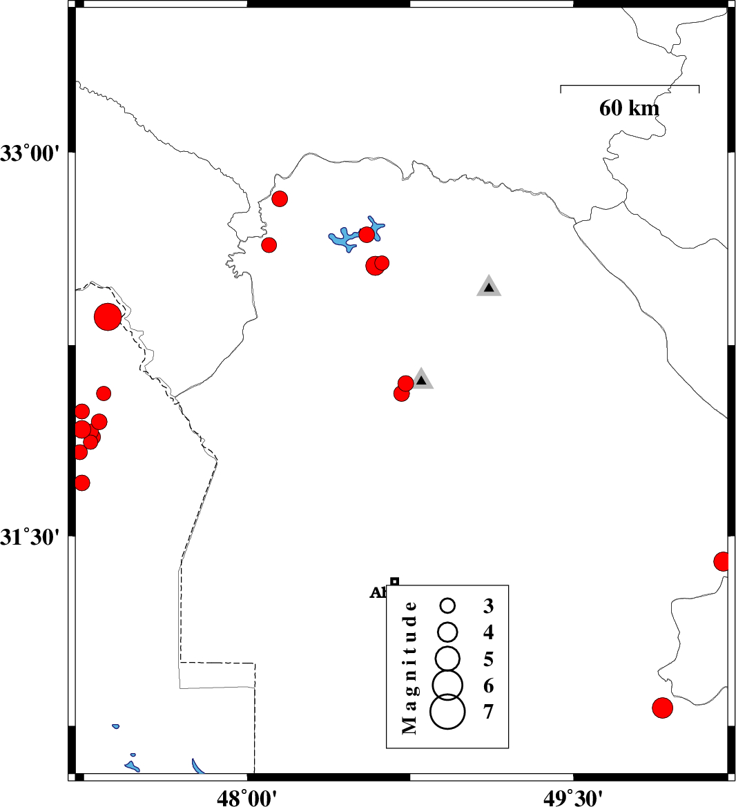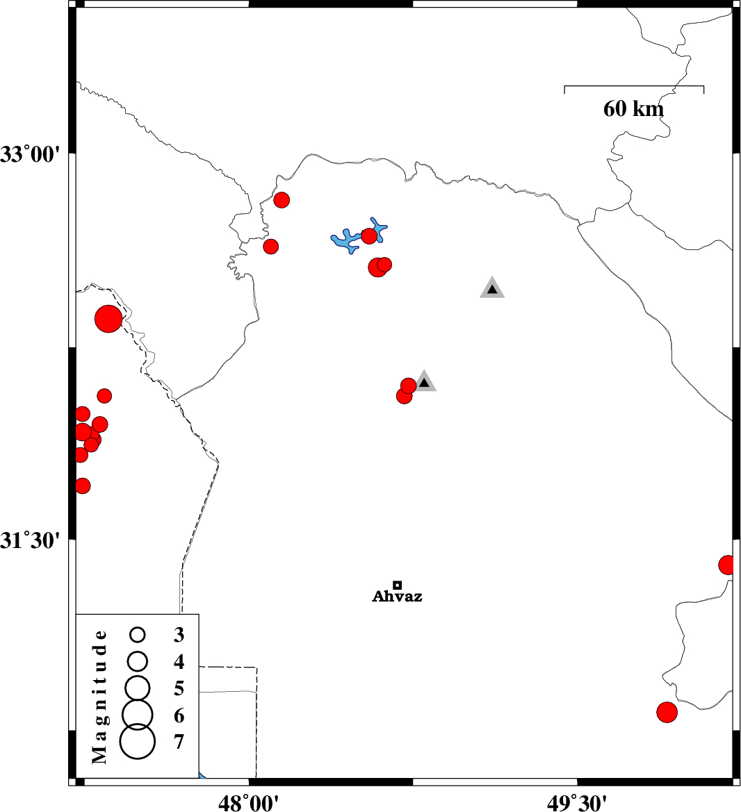 2008/08/27 23:16:17.9 03:46:17.9 31.8347.2337 ML3.1 95 km North-West of Susangerd, Khoozestan Province