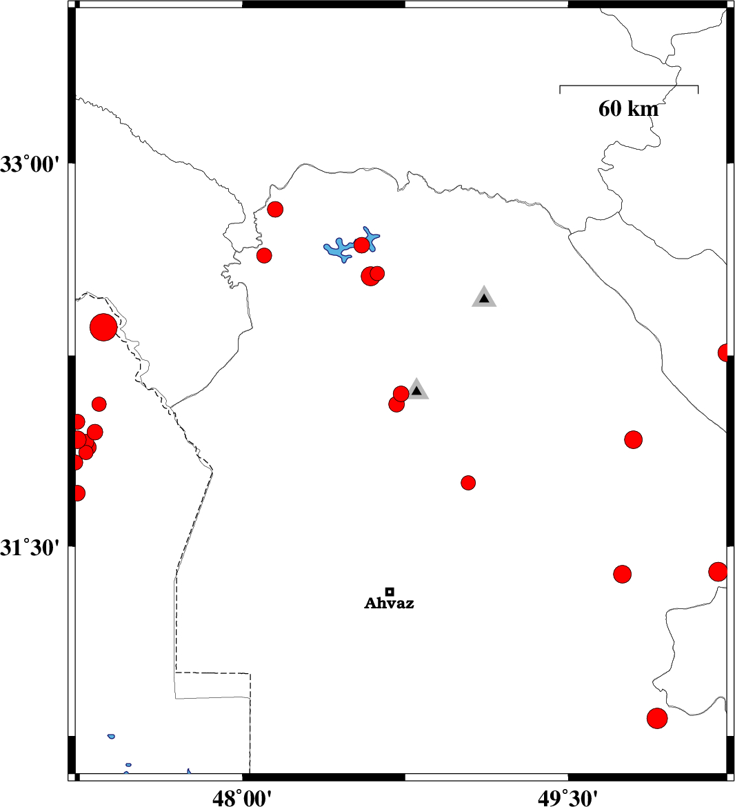 | 2008/08/29 | 12:16:07.5 | 16:46:07.5 | 32.64 | 48.1 | 18 | ML3.1 | 31 km North-West of Andimeshk, Khoozestan Province | ||