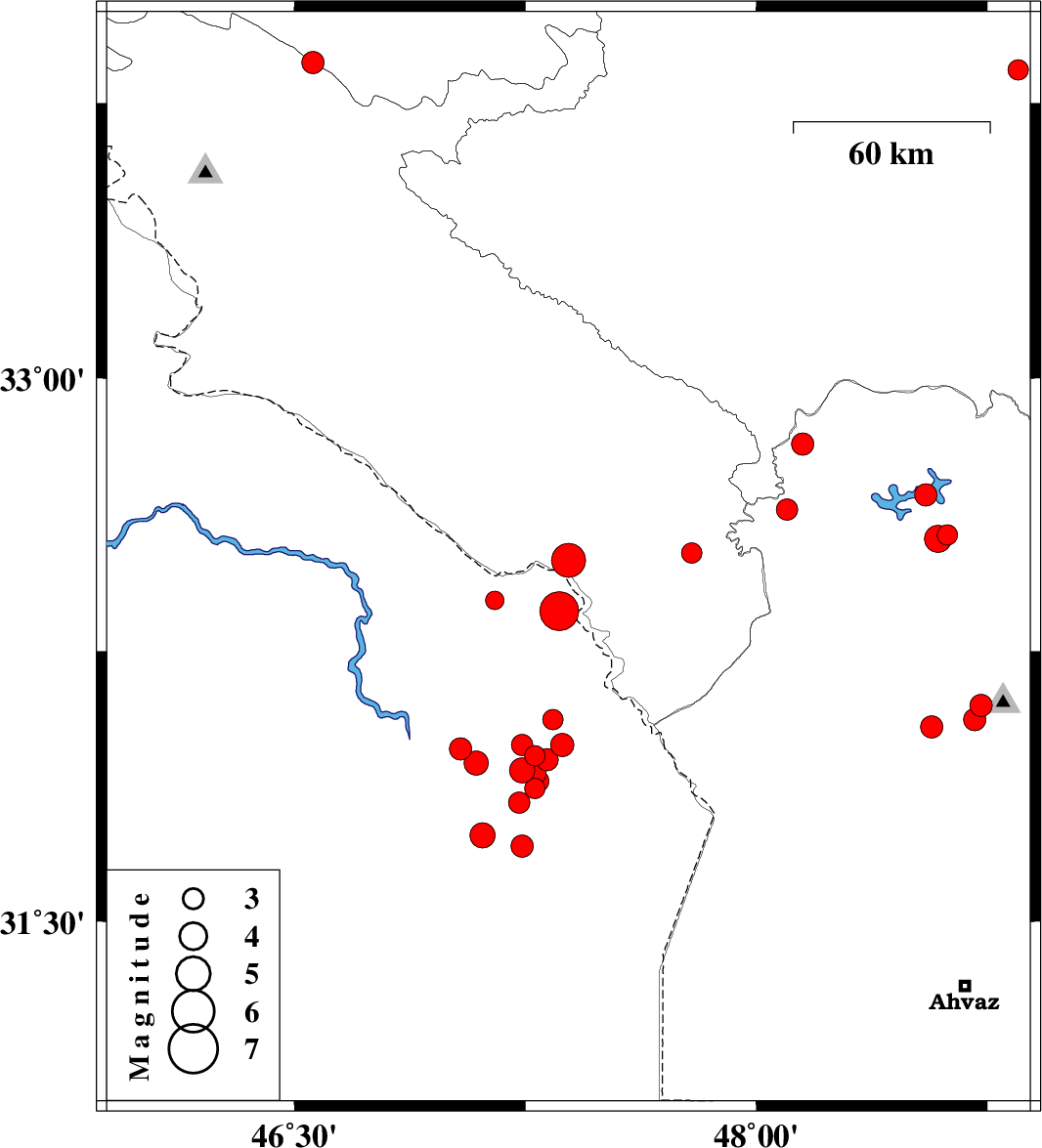 | 2008/08/28 | 02:43:57.5 | 07:13:57.5 | 31.87 | 47.28 | 37 | ML3 | 91 km South of Dehloran, Ilam Province | ||