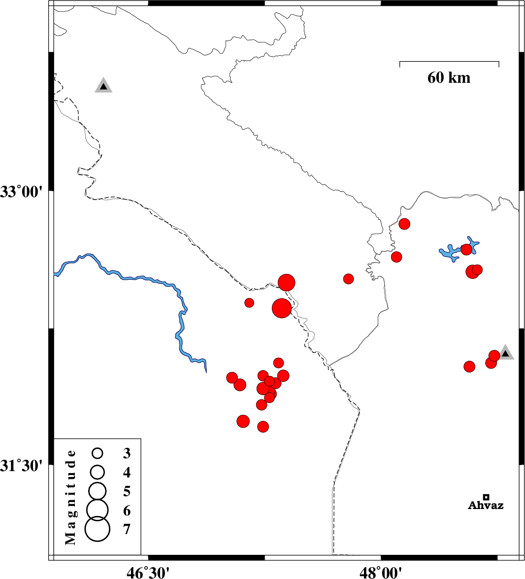 2008/08/28 | 02:43:57.5 | 07:13:57.5 | 31.87 | 47.28 | 37 | ML3 | 91 km South of Dehloran, Ilam Province | ||