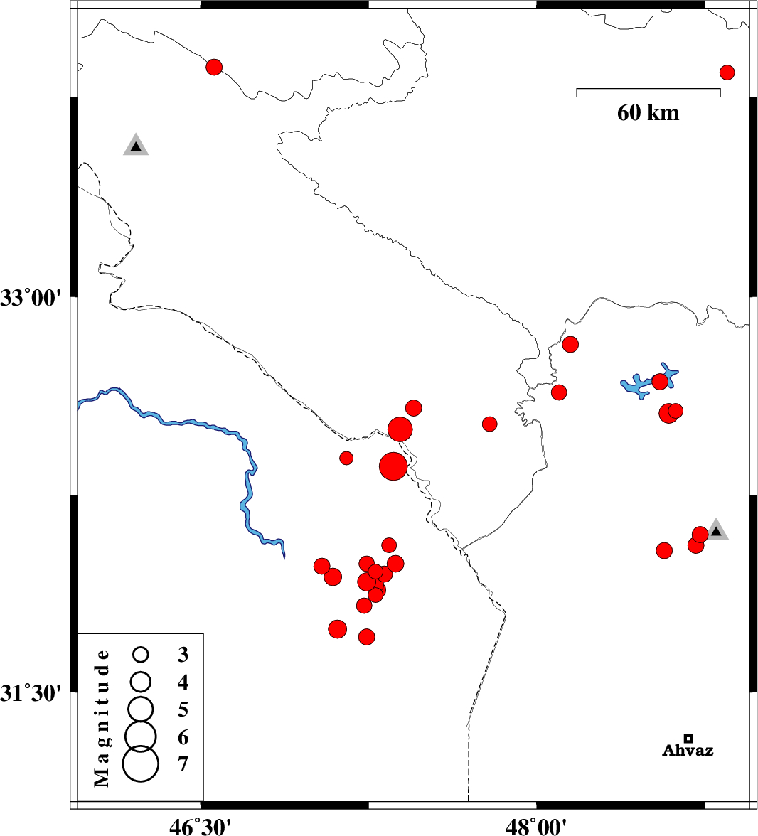 2008/08/28 | 02:43:57.5 | 07:13:57.5 | 31.87 | 47.28 | 37 | ML3 | 91 km South of Dehloran, Ilam Province | ||