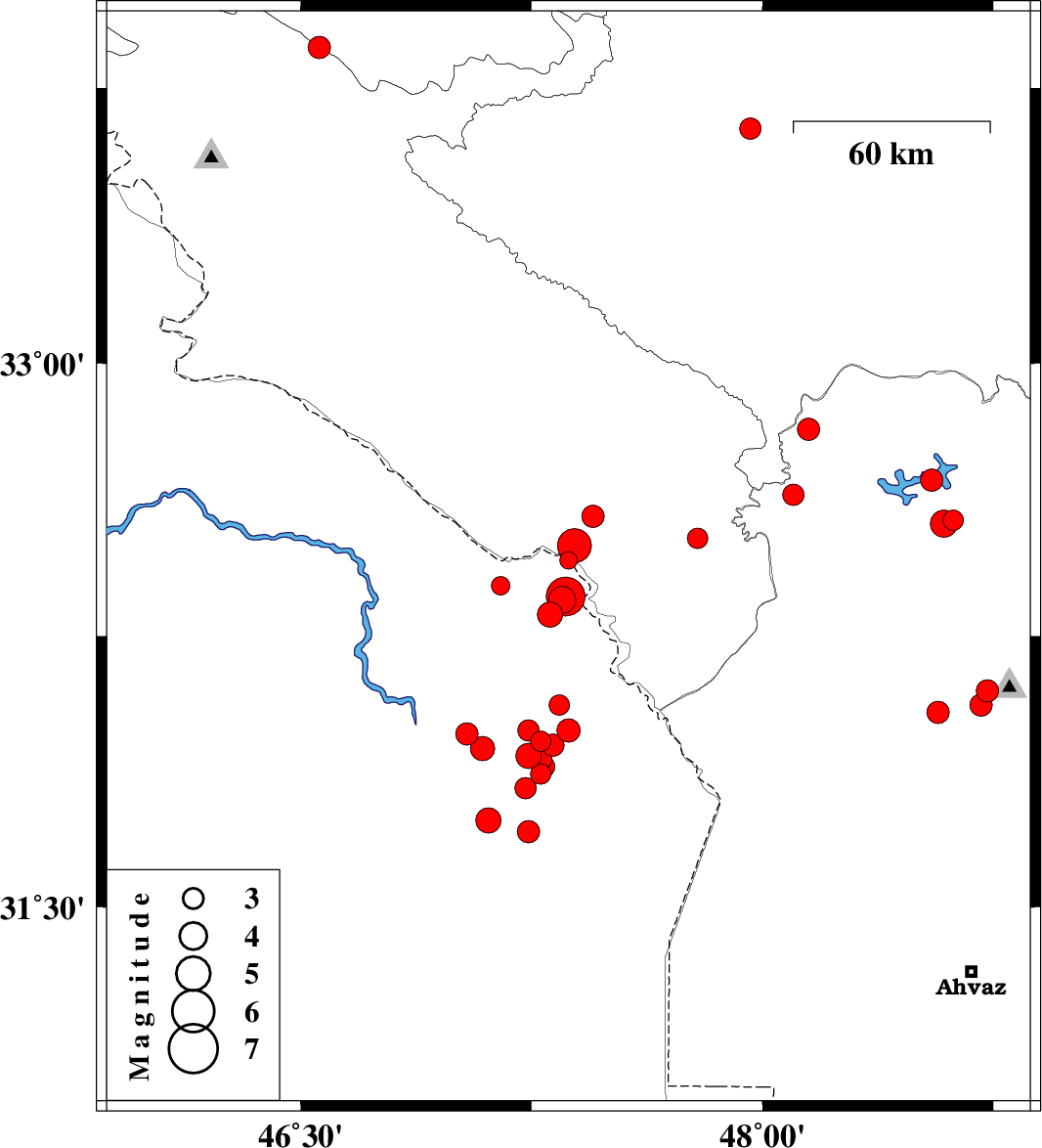 | 2008/08/28 | 02:43:57.5 | 07:13:57.5 | 31.87 | 47.28 | 37 | ML3 | 91 km South of Dehloran, Ilam Province | ||