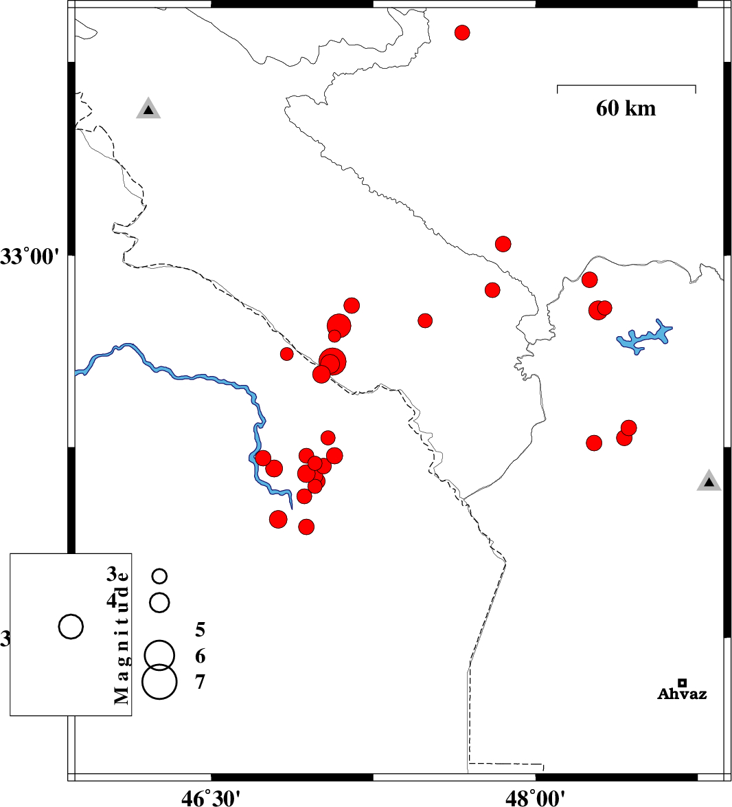 2008/08/28 | 02:43:57.5 | 07:13:57.5 | 31.87 | 47.28 | 37 | ML3 | 91 km South of Dehloran, Ilam Province | ||