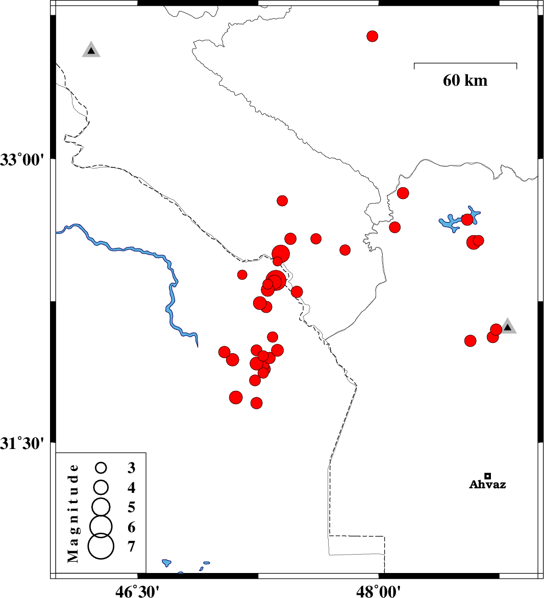 | 2008/08/28 | 02:43:57.5 | 07:13:57.5 | 31.87 | 47.28 | 37 | ML3 | 91 km South of Dehloran, Ilam Province | ||